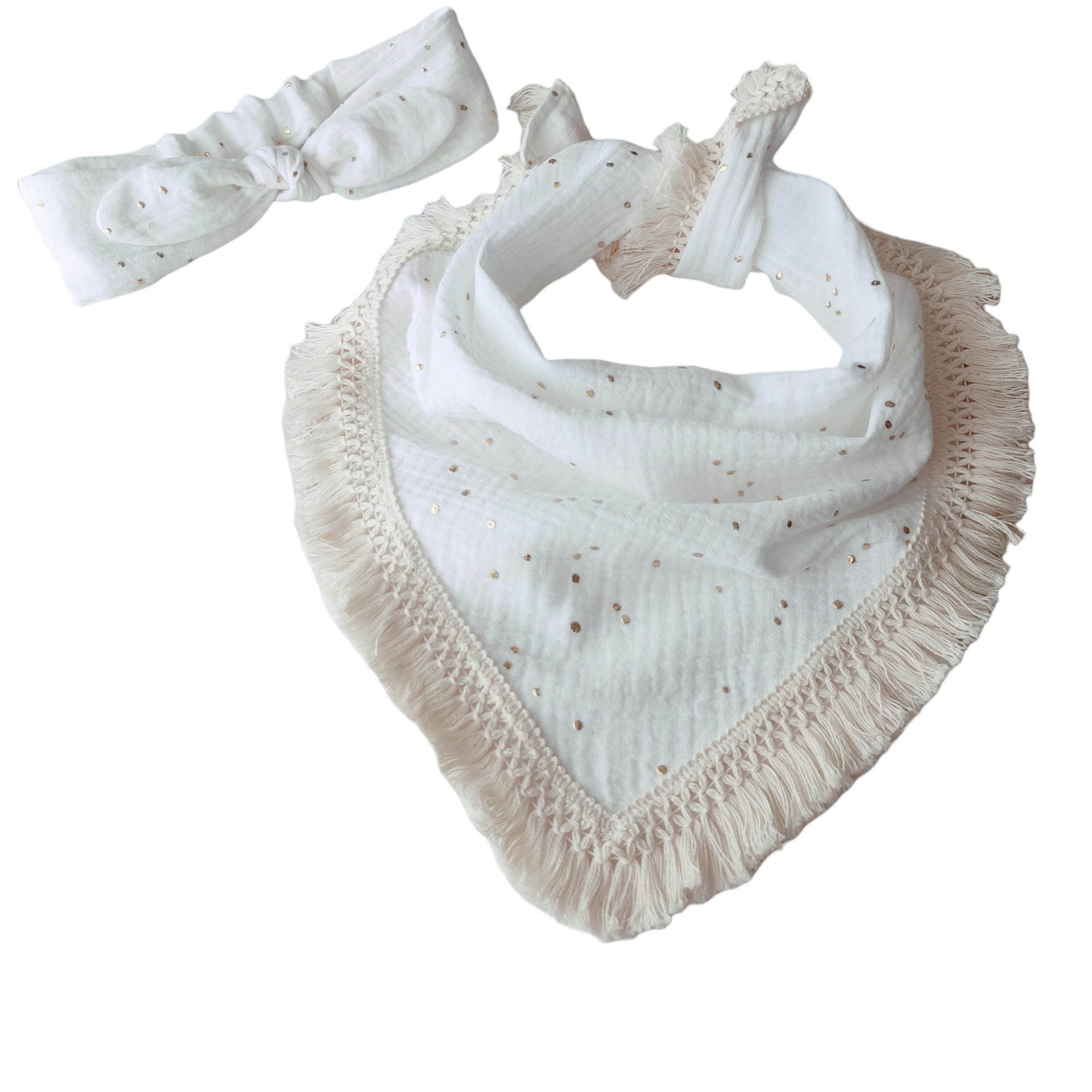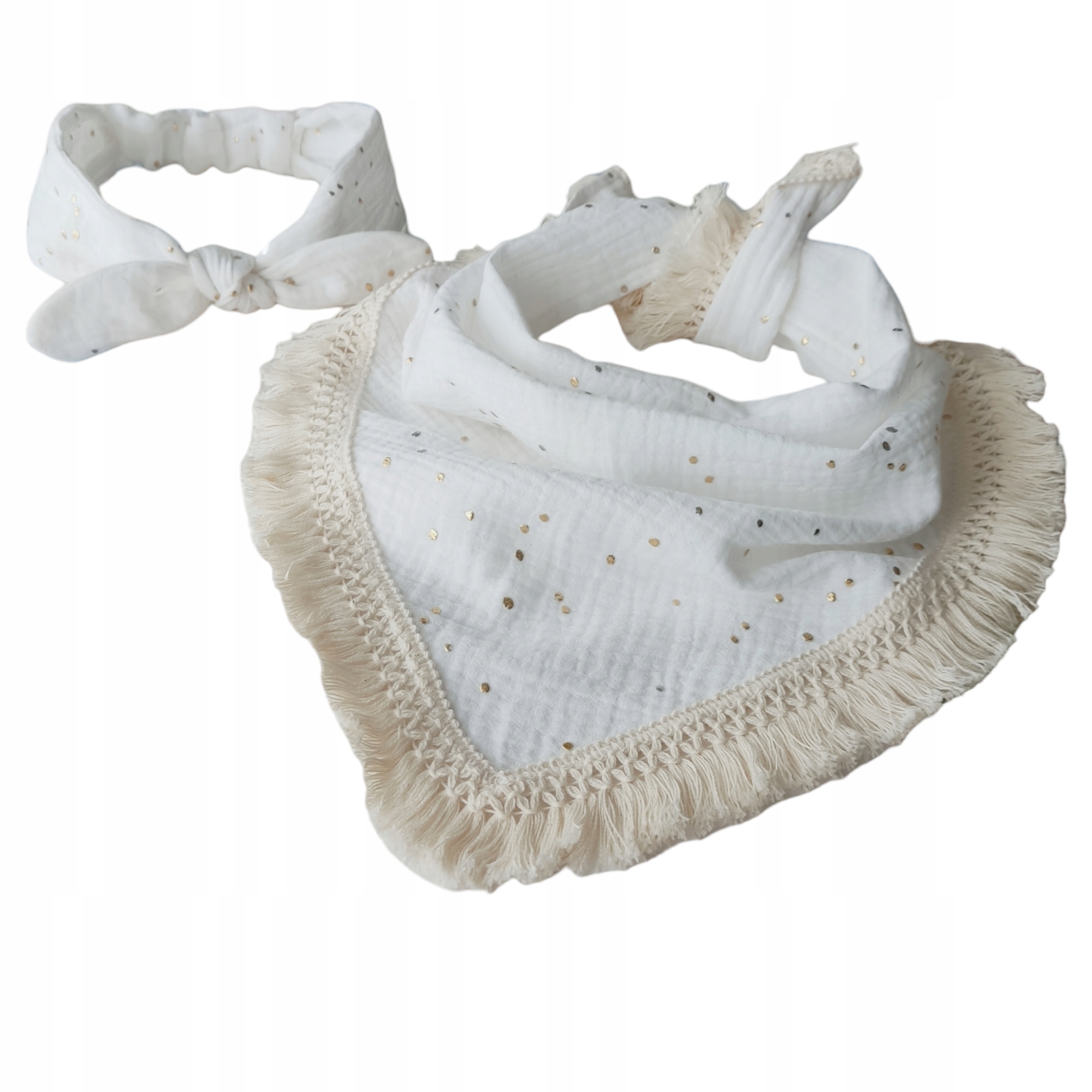 Хустка МУСЛІНОВА з китицями, золоті точки, пов'язка