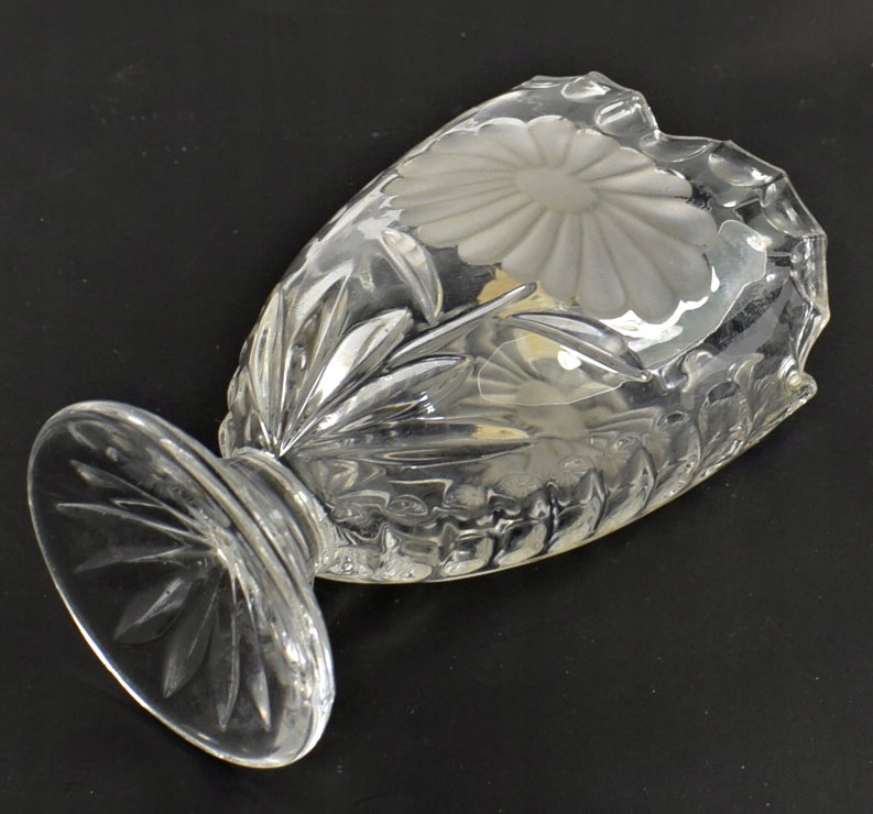 Кристалл, толстое стекло - бесцветное. Интересная форма, в виде симметрично созданного рельефа в стеклянном дураке, отделанном с ручным, расщепленным сокращением . Массивная ваза.