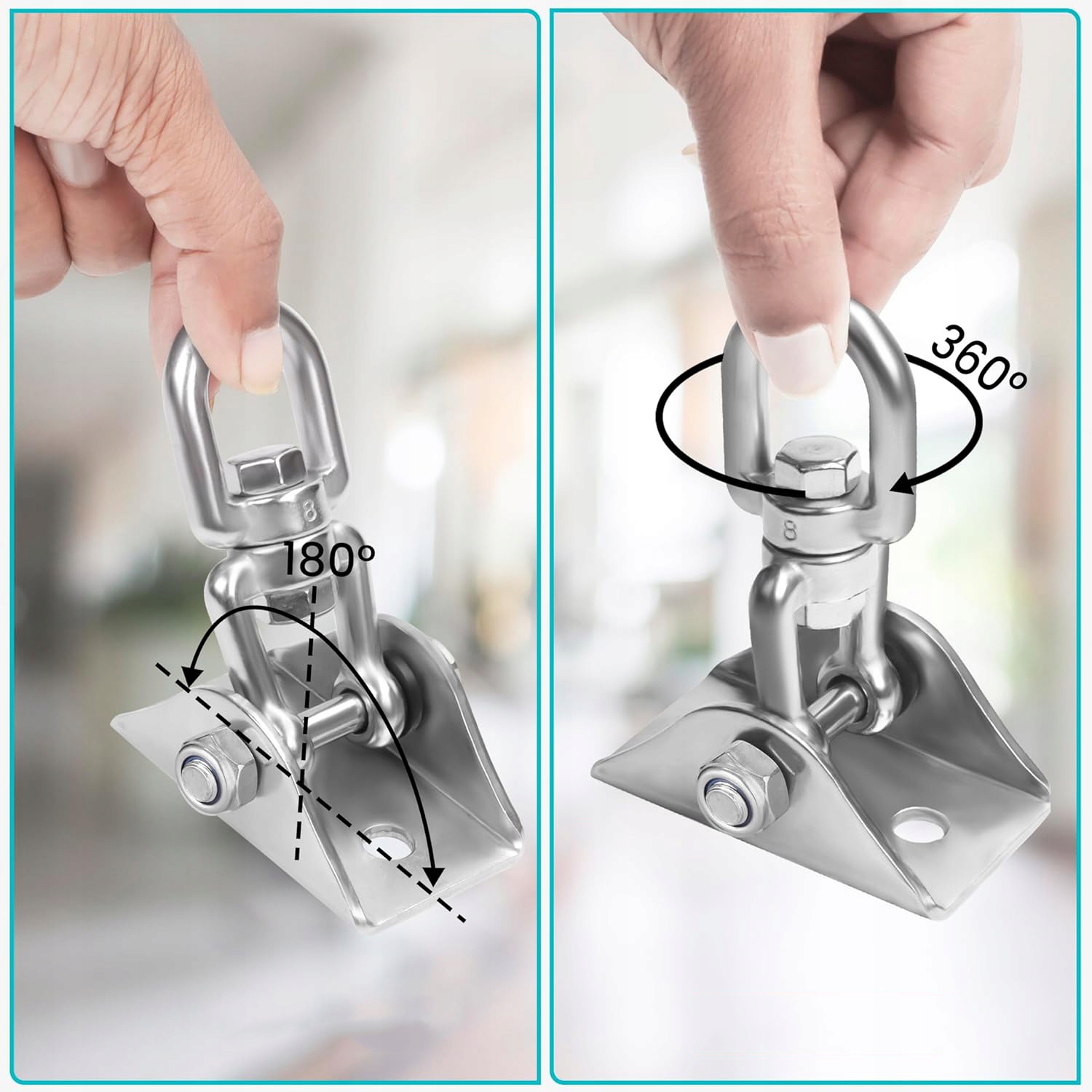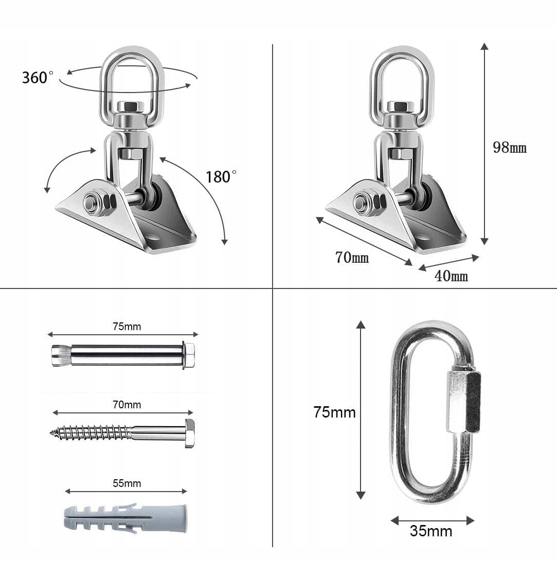 ✅【Широкое применение】 Этот потолочный поворотный крючок подходит для всех качелей внутри и снаружи помещений. Такие как подвесное кресло, качели на веранде, кресло-качалка, мешок с песком, качели на открытом воздухе, воздушная йога и т. д. помогут вам расслабиться или заняться спортом.