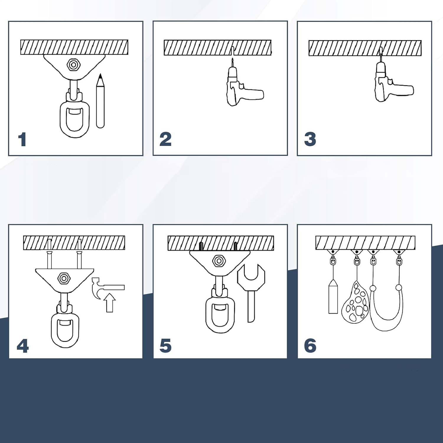 ✅【Простой монтаж】 Высокопрочный потолочный крюк Крепится шурупами к деревянной балке или бетон, можно установить за считанные минуты.