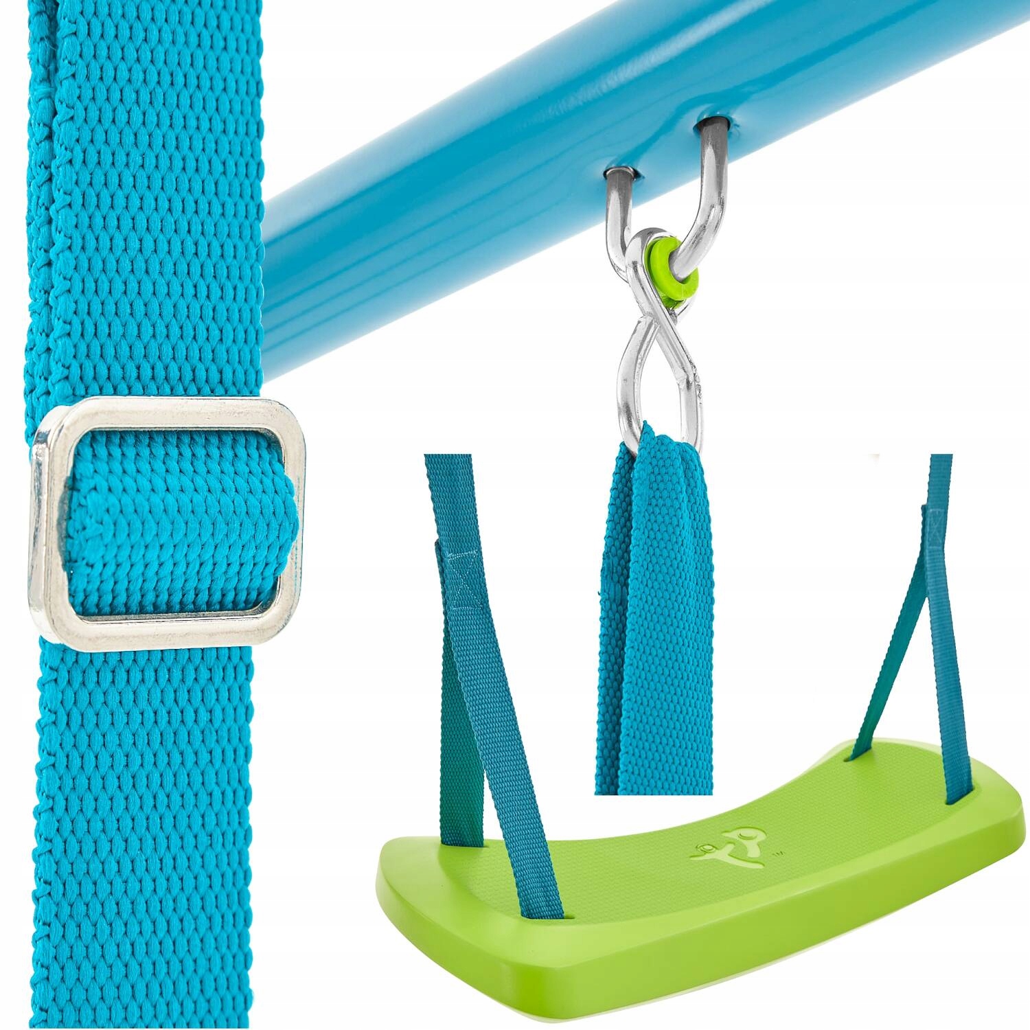Качели изготовлены из прочной стали с порошковым покрытием. Правильно защищенные металлические элементы гарантируют безопасное развлечение на долгие годы. Все дополнительные элементы качелей, такие как сиденья, крючки, веревки и т. д., очень высокого качества и полностью безопасны для маленьких пользователей.