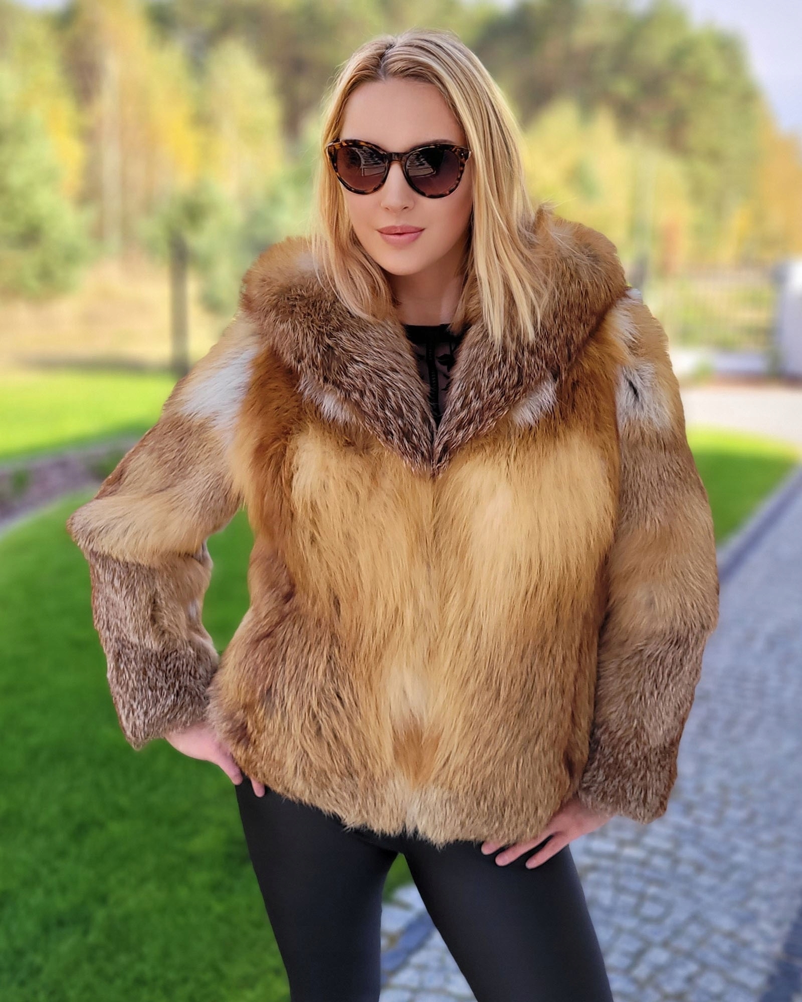 Красивый мех с капюшоном из натуральной кожи натуральной лисы высочайшего качества.