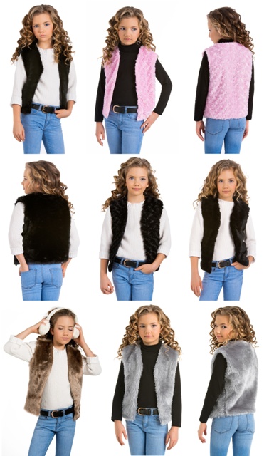 Предлагаем модные детские жилетки с капюшоном, выполненные из искусственного меха норки и на подкладке. Жилеты можно носить поверх блузки, свитера или куртки.