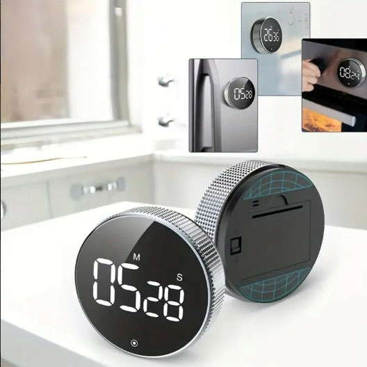 Стильный и функциональный магнитный светодиодный кухонный таймер является незаменимым гаджетом для каждого любителя приготовления пищи. Оснащен большим светодиодным экраном , позволяет легко читать время даже с большего расстояния. Благодаря магнитной основе он может быть удобно прикреплен к металлическим поверхностям, таким как холодильник или капюшон. Таймер предлагает настройку времени, используя вращающуюся ручку , интуитивную работу с одним щелчком с одним щелчком и тремя уровнями громкости - от высокого до низкого до тихого режима