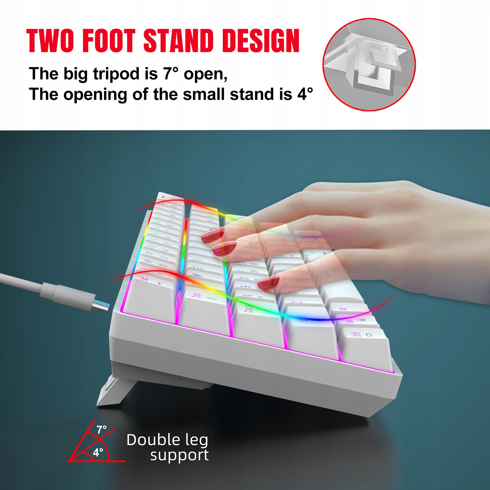 1. Удобная конструкция: механическая клавиатура 61-й полости имеет компактную систему, сберегающее пространство для настольных компьютеров. Отдельный ключ и конструкция кабеля делают его более удобным для ношения и хранения. Вы можете легко организовать его в любое время.