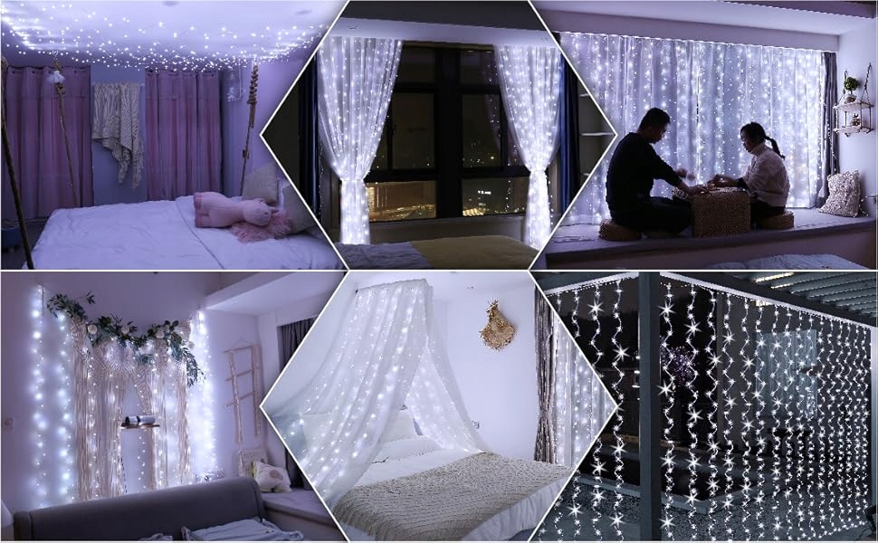 - высококачественный мягкий струнный свет】 : 300 одиночных светодиодов, 10 м x 22 м. Шторы оснащены дополнительным 5 -метровым кабелем длиной. 3 м Основной шнур и 10 строк включены в набор. ST -образные медные проволочные строки являются долговечными и гибкими, естественным образом вешайте и отрегулируют желаемую высоту. Нет ограничений для вашего воображения, сделайте какую -либо форму, которую вы хотите. Наслаждайтесь сказочным миром (занавес не попадает в объем доставки).