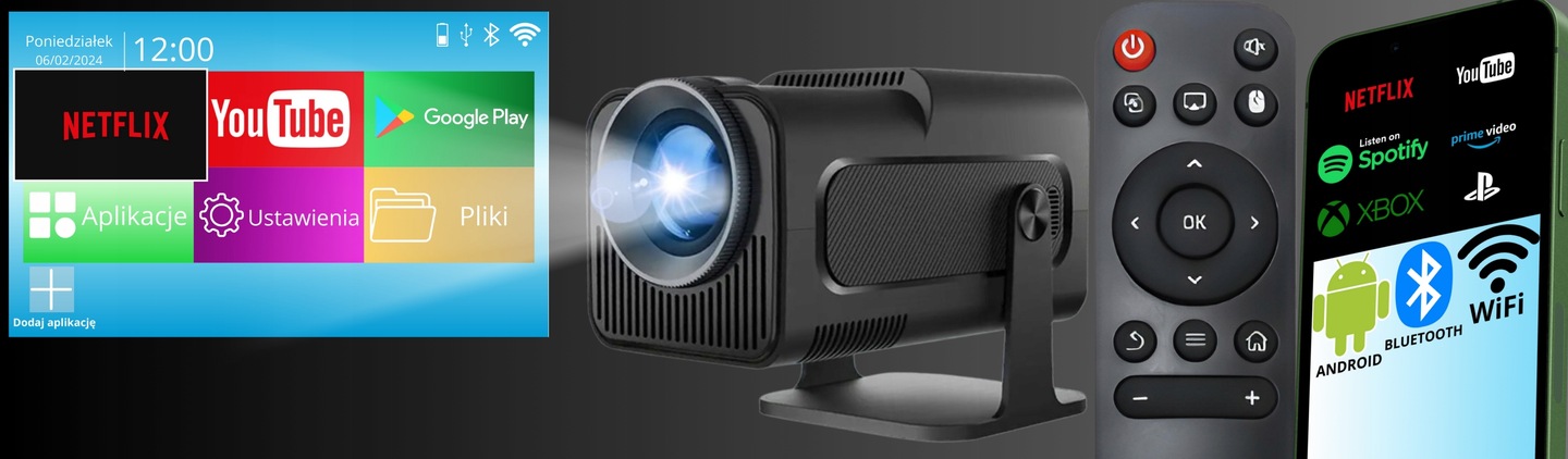 Зачем выбирать наш продукт? Для самых популярных приложений, таких как youtube , netflix , hbo , spotify и многие другие. Возможность использования Google Play означает, что вы можете установить дополнительные приложения, адаптируя проектор к вашим потребностям. Спасибо bluetooth и wifi , вы можете беспроводной подключение к проектору с помощью телефона, компьютера или планшета, что устраняет необходимость использования кабелей. b> сила и мобильность Жизнь лампы составляет до 60 000 часов , что переводится на многолетнее использование без проблем. Благодаря долговечности и компактным размерам проектор может сопровождать вас в любом приключении. x 720p С возможностью воспроизведения фильмов в качестве 4K , проектор гарантирует резкое и четкое изображение. Яркость 280 ANSI LM и Contrast 2000: 1 делает изображение прояснить даже более слабым светом. Возможность вручную регулировать фокус с помощью верхней части проектора, позволяет адаптировать изображение к индивидуальным предпочтениям. Функция Автоматическая трапециевидная коррекция 4D Keystone гарантирует, что изображение всегда является совершенно прямоугольным, независимо от угла проекции. Вы также можете регулировать угол проекции на 180 ° , что позволяет отображать фильмы на потолке или в любом месте. /p>