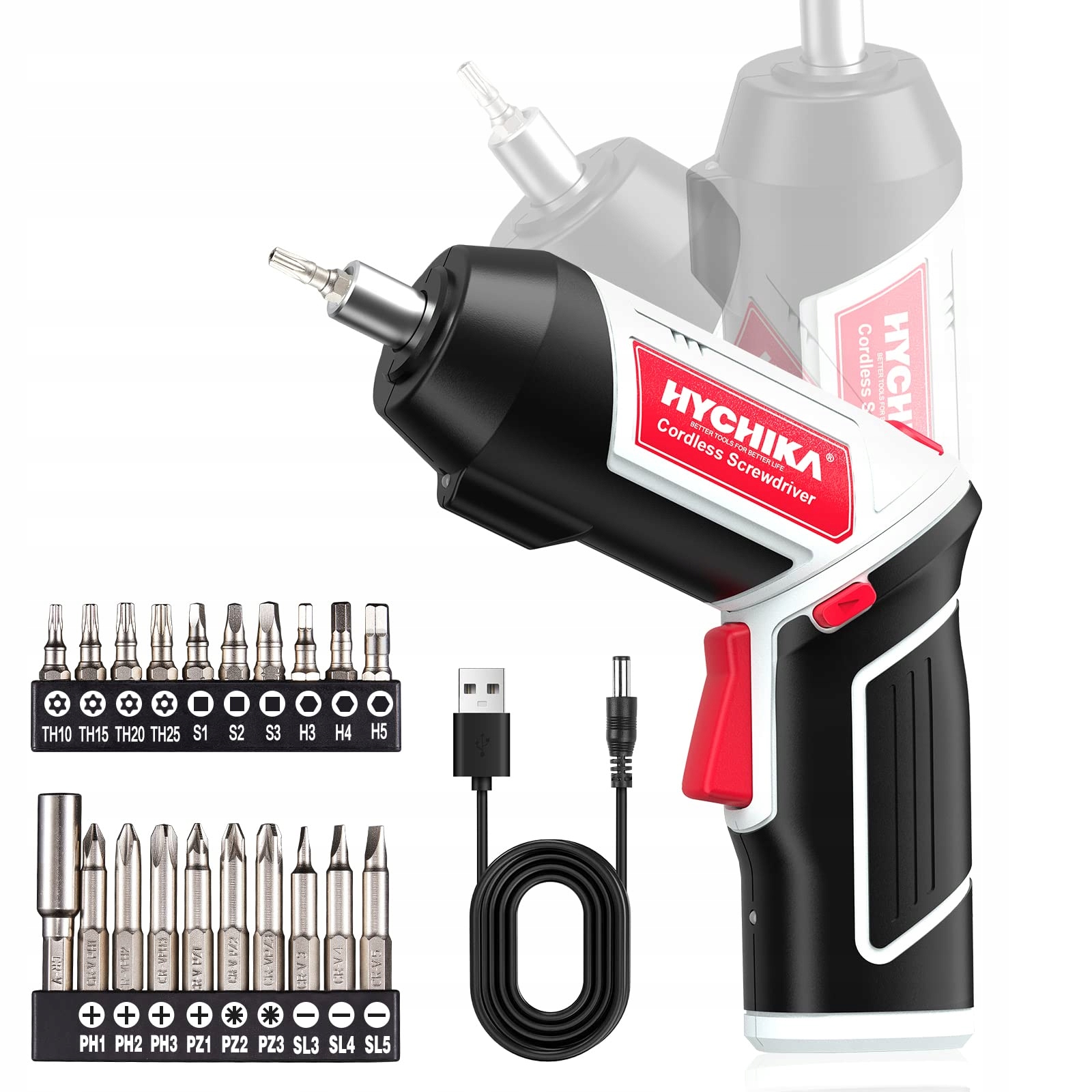 20 аксессуаров: благодаря 19 советам и 1 длительный стержень подходит для подвешивания и регулировки изображений, сборки мебели, прикрепления игрушек и ремонта электрических устройств. Литий-ионная батарея 2000 года обеспечивает большую емкость и более длительный срок службы