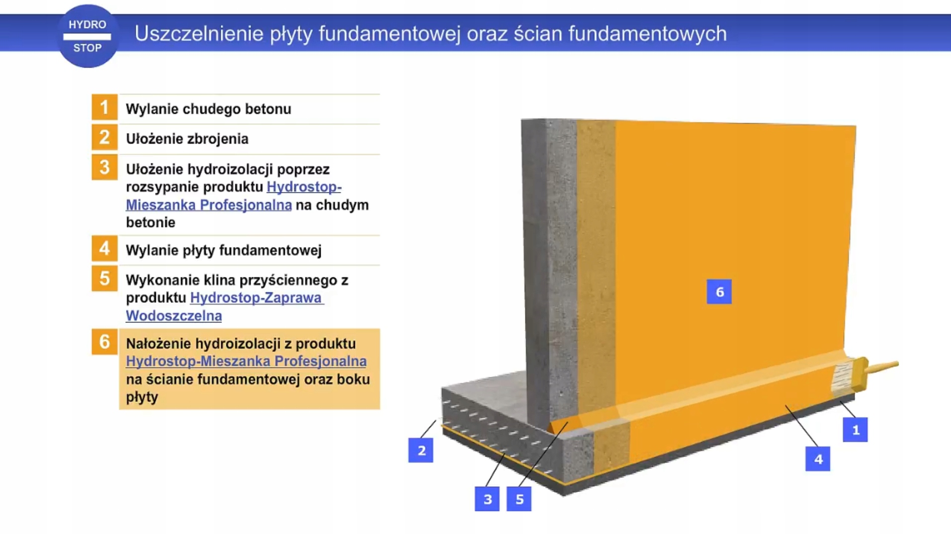 Применяется как для изоляции объекта на этапе строительства, так и для утепления существующих конструкций изнутри, т.е. без их раскопок. Этот продукт используется в вышеупомянутой области в жилых, промышленных и общественных зданиях, как внутри, так и снаружи конструкции. В некоторых странах продукт одобрен для использования при контакте с питьевой водой. Кирпичные стены, сборные потолки и компенсационные швы следует герметизировать другими продуктами Hydrostop.