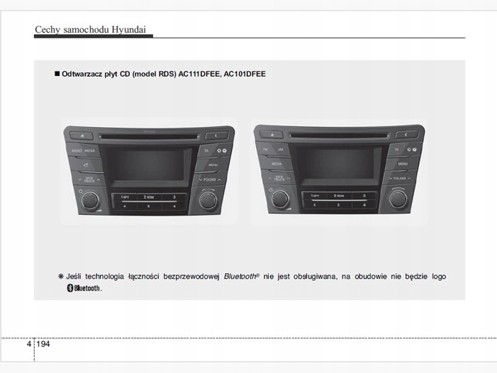 <р> Версии Седан и Комби и описание магнитолы. <р> Двигатели, представленные в данном руководстве: Бензин: 1,6, 2,0 Дизель: 1,7 <р> Состояние: новый Страниц – 645 Тип – книга Язык – польский Выпуск – 2015 г. Обложка – красочная. Центр – черно-белый. Бумага – офсет А5 210х149 мм.Руководство по эксплуатации Hyundai содержит все версии оборудования и полезную информацию о том, как эффективно и безопасно использовать автомобиль, например. - индикаторы, контрольные лампы открытия и закрытия - освещение и обзорность, сиденья, отсеки для хранения вещей, обогрев, вентиляция, кондиционирование - вождение, советы по эксплуатации, обслуживание автомобиля - уровни жидкостей, проверка и долив, аварийные операции, замена колес, предохранители, замена лампочек - технические данные... и многое другое, дающее ощущение безопасности и комфорта путешественников. Польское законодательство обязывает продавца приложить инструкцию по эксплуатации автомобиля на польском языке. Руководство пользователя автомобиля новое, на польском языке.