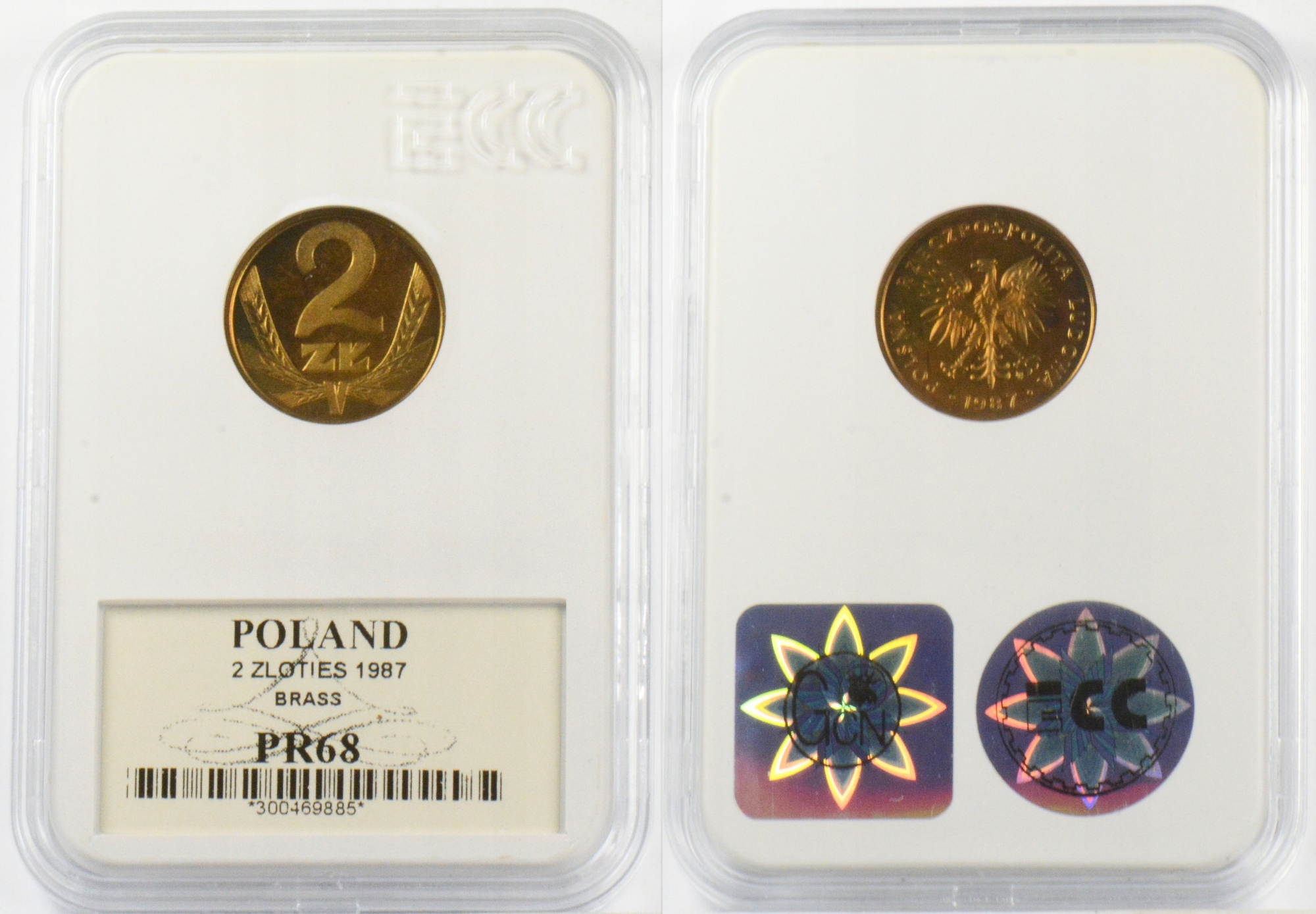 ХЗ. 2 ЗОЛОТА 1987 ЛАТУНЬ PR68 9/10