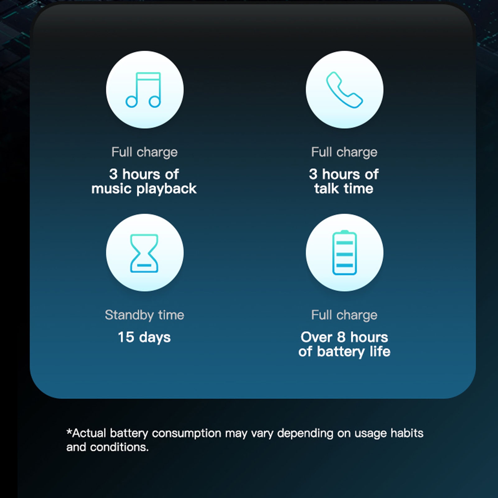 5. Автоматический спящий режим: очки имеют автоматический спящий режим после удаления, обеспечивая длительное время автономной работы. При оценке большой способности 290 мАч он обеспечивает длительное время автономной работы.