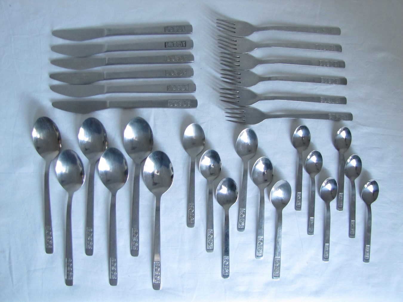 Набор столовых приборов Герлах Роуз, период PRL. Соборы со следами использования, без повреждений, нет дефектов, кривизов, выходов и т. Д. Длина столовых приборов: обедая ложка длиной 19 см, 20,5 см, ножи 19 см, десертная чайная ложка 14 см, кофейные чайные ложки 12 см. Цена конечно для всего набора.