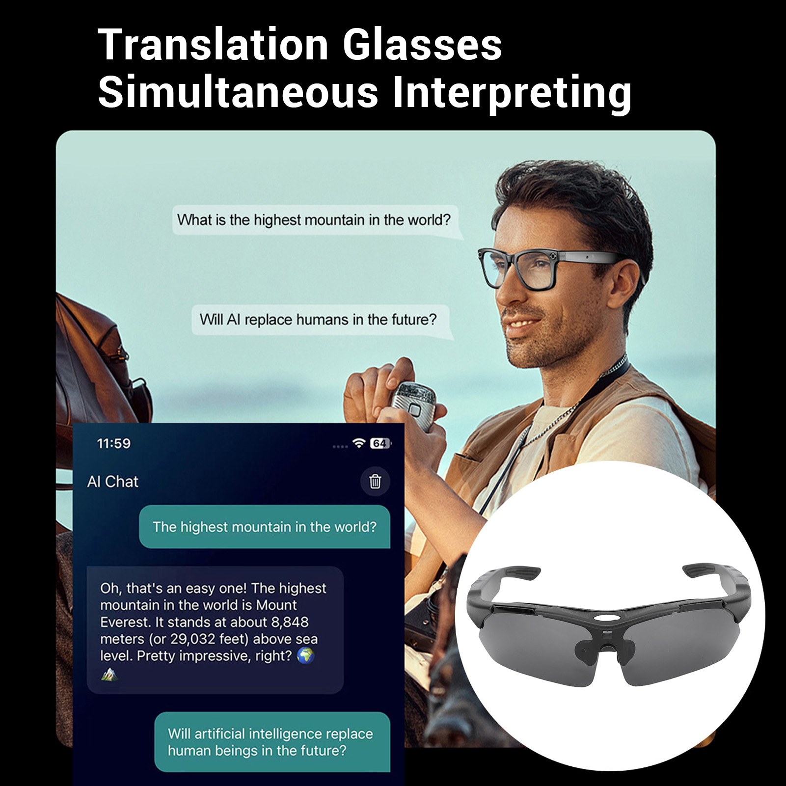 3. Удобное общение: Стакратные очки AI с интеллектуальным переводом оснащены встроенным микрофоном и динамиком, поддерживая множество методов связи, с четким качеством звука и более удобной связи