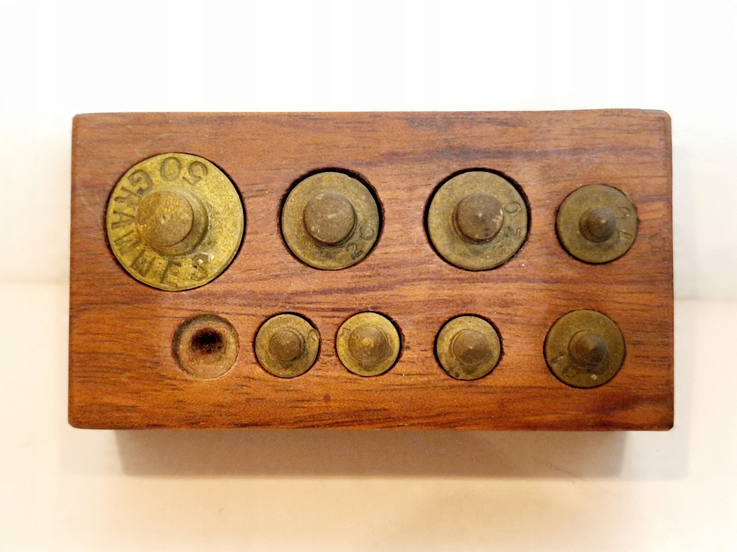 И половина XX W / 2-100 г (8 шт.) Старые метрические коммерческие веса в случае / 975