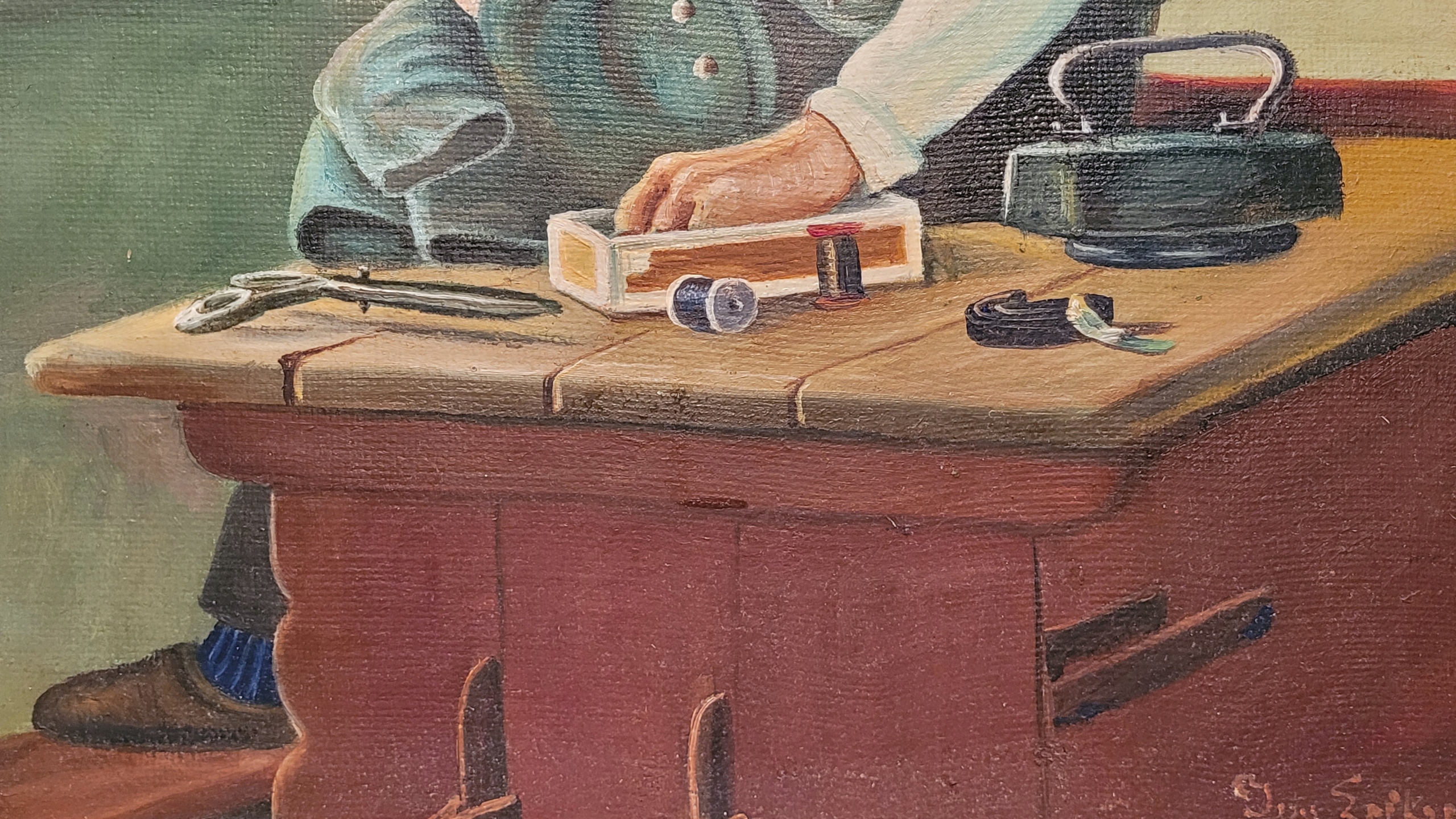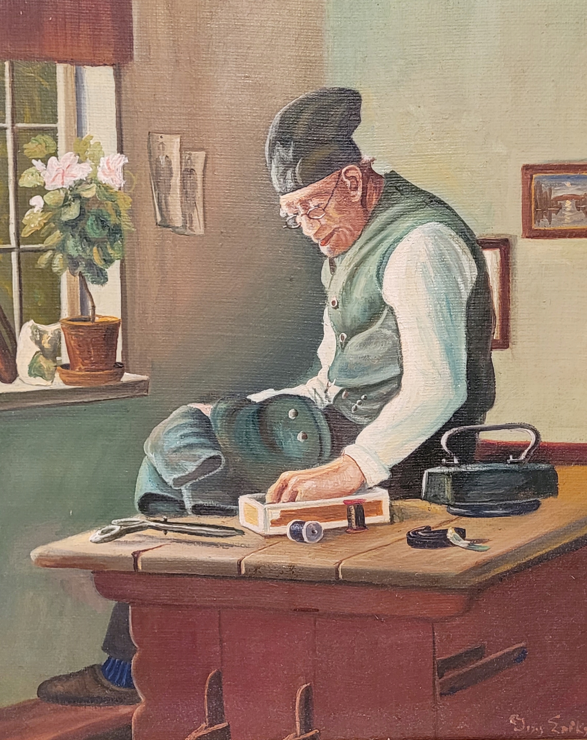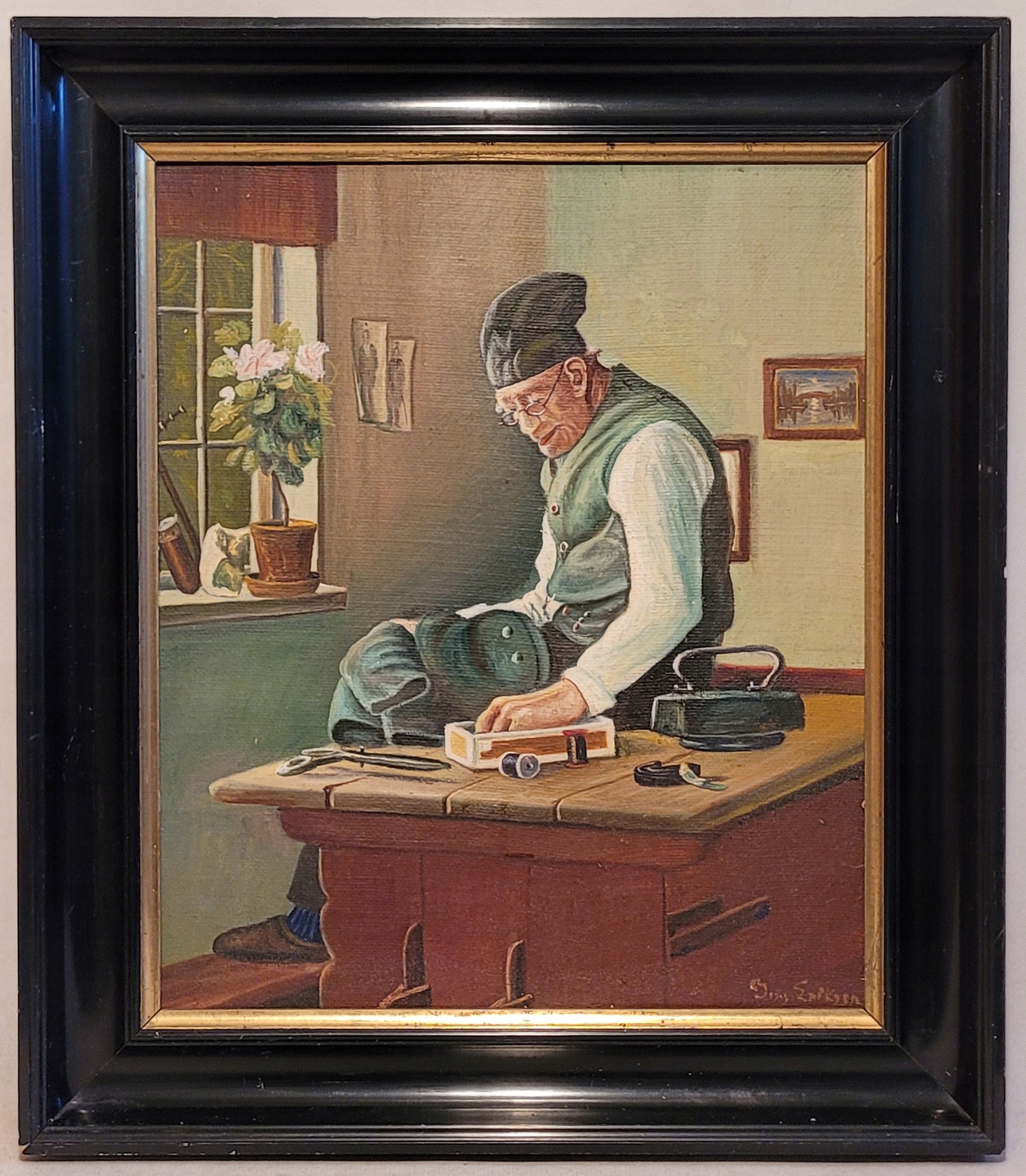 Тема продажи - красивая старая масляная картинка «портной».