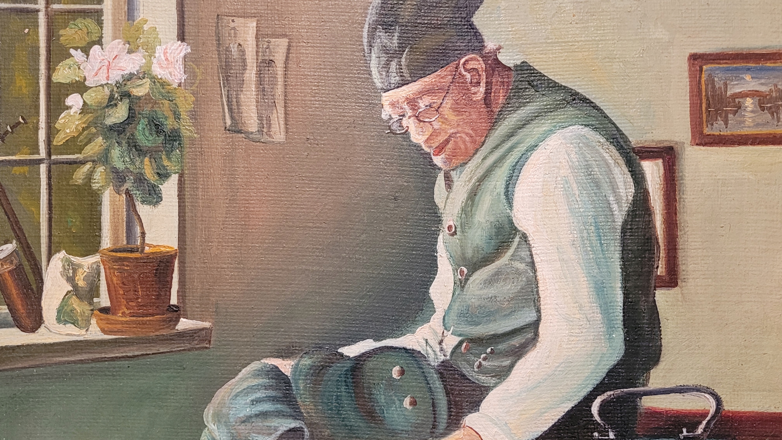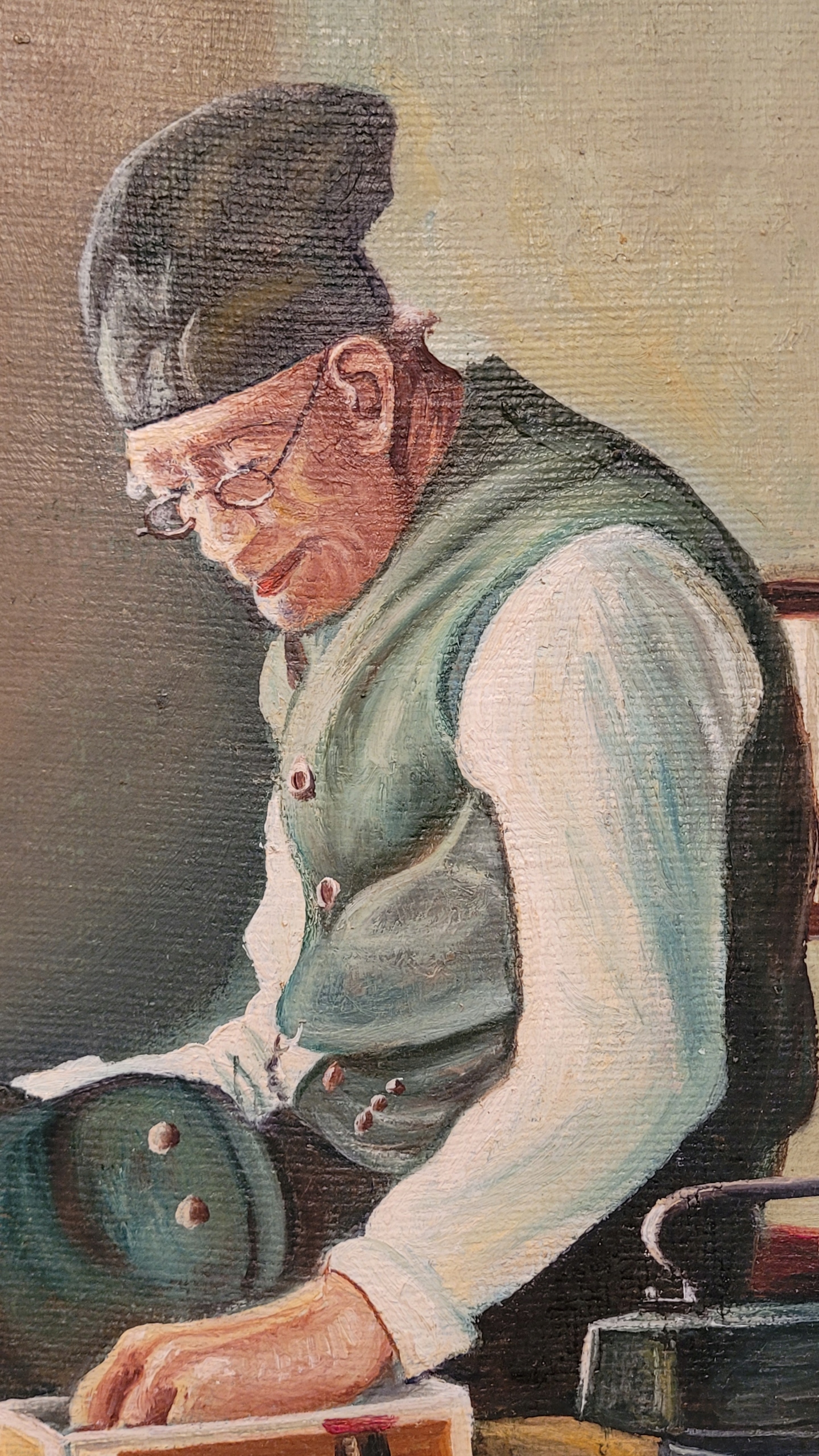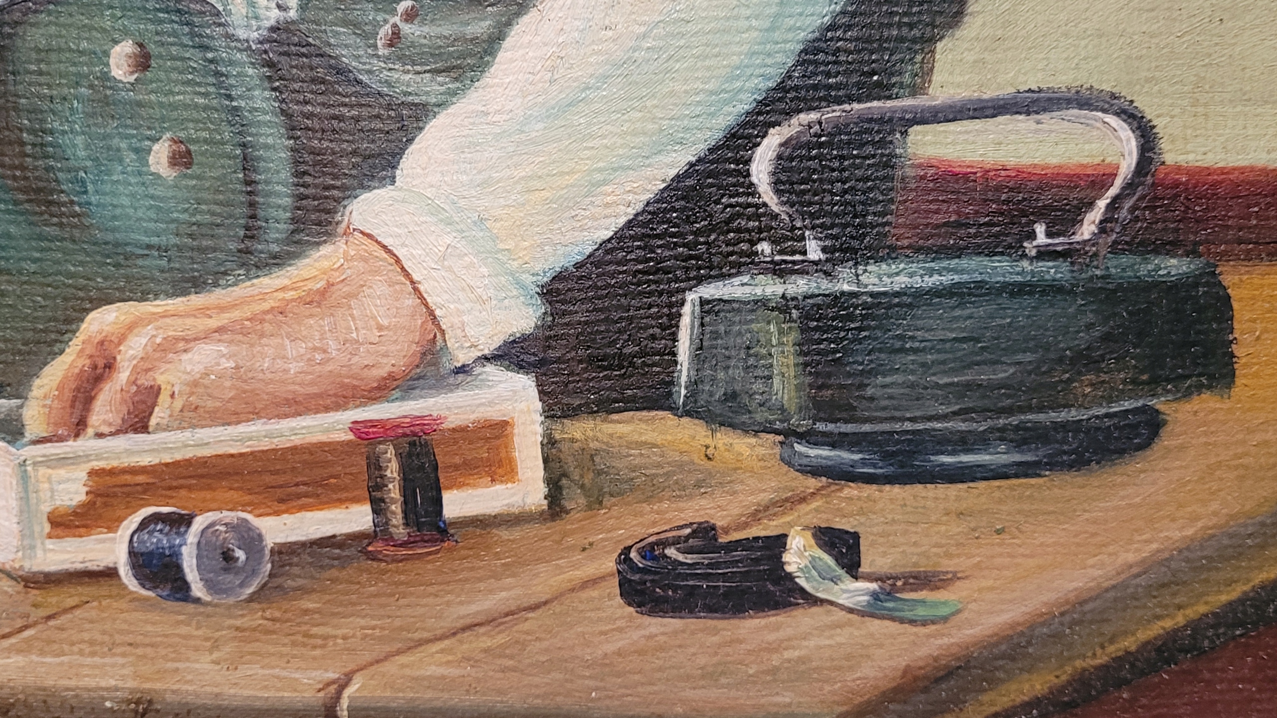 Тема продажи - красивая старая масляная картинка «портной».