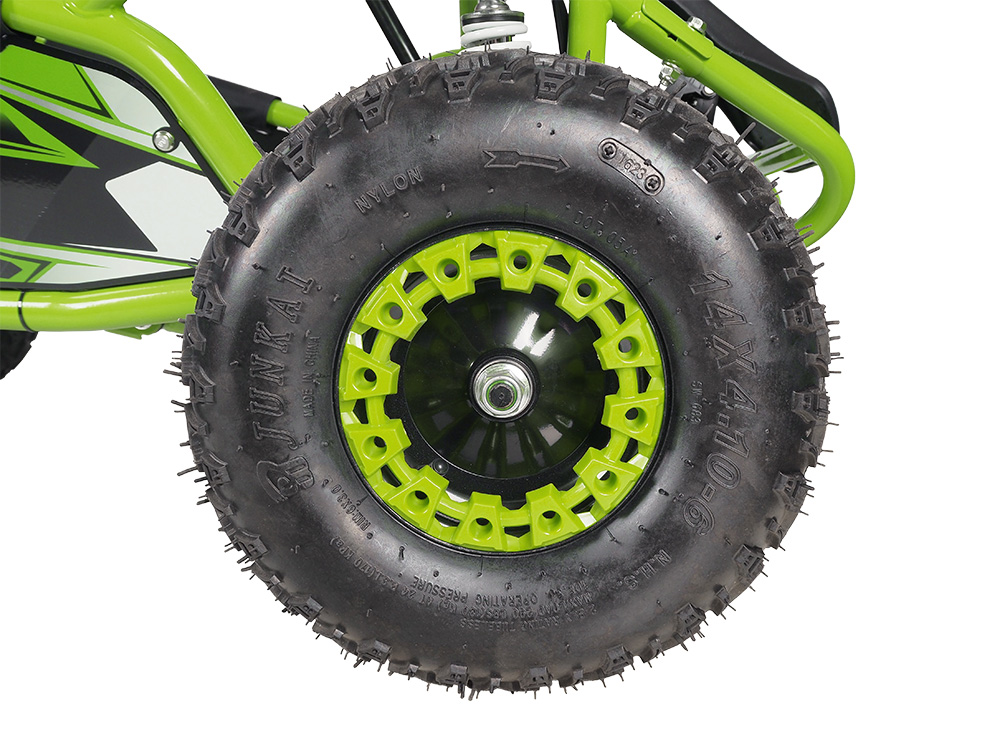 Электроколяска 8Е имеет гелевые аккумуляторы с емкость 48В 12Ач, что позволит поиграть на картинге несколько часов или проехать до 30 км. Привод, которым оснащен этот картинг, имеет мощность 1000 Вт. Максимальная скорость багги – 30 км/ч – регулируется тремя передачами. Также здесь можно найти багги с более сильными параметрами — багги 10Е и багги 14Е.