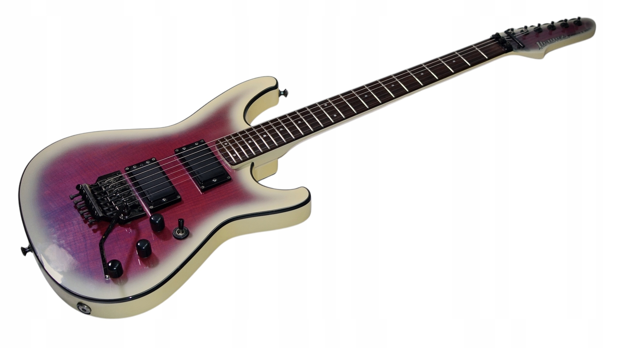 Great Ibanez Roadstar II Модель RG530, сделанная в Японии в 1985 году. Красивый цвет жемчужной гитары находится в хорошем состоянии. Хорошие+пороги. Тело сделано из Линдена с очень хорошим наложением кленового клона, клоном Griffin с палисанди -жарким домом. Пикапы-это IBZ, оба пассивные, оба отключены на сингле с отдельными потенциометрами. Мост - края. В общем, инструмент отличный, удобный и отличный. Я рекомендую и приглашаю вас на тесты