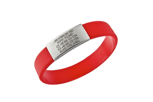 На браслете Elite можно разместить все самые важные данные, которые вам необходимы. может оказаться полезным в критический момент. Они будут выгравированы лазером на идентификационном значке из нержавеющей стали, поэтому они долговечны, их нельзя стирать или стирать. Доступно 15 цветов ремешка Elite.