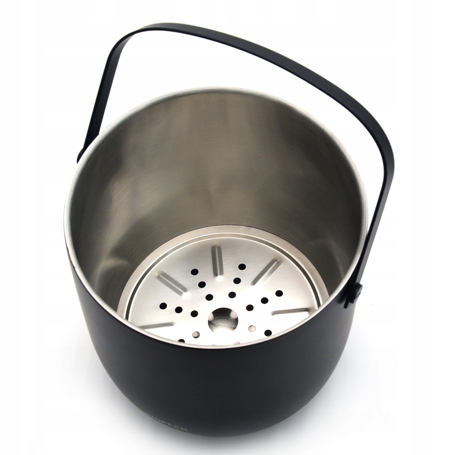 Ведро из нержавеющей стали с порошковым покрытием черного цвета.