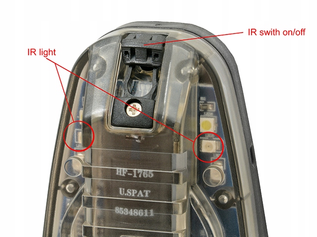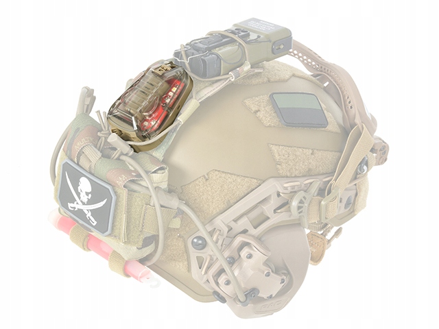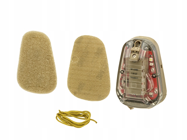 HEL-STAR 6 GEN III стробоскопический маркер для шлема. С помощью липучки с самоклеящимся клеем мы также можем прикрепить ее к униформе, рюкзаку или тактическому жилету. Освещение имеет два режима работы (А и В) и четыре функции (А1, А2, В1, В2). Режим А1 - включает диоды в постоянном режиме, А2 - диоды в постоянном режиме плюс белый мигающий диод, В1 - мигающий инфракрасный и В2 - постоянный инфракрасный. Переключатели позволяют плавно и удобно менять режим работы, а также включать и выключать его. Маркер помогает идентифицировать, определить местонахождение и обозначить вашу позицию во время тактических операций. Он был разработан для воздушно-десантных операций, прыжков с парашютом и наземных операций для армии и силовых структур. В нем есть отверстия для прокладки дополнительных страховочных строп и предотвращения их отрыва от шлема. Маркер идеальной конструкции устойчив к ударам, воде и пыли. Питается от одной батарейки CR123 (не входит в комплект).