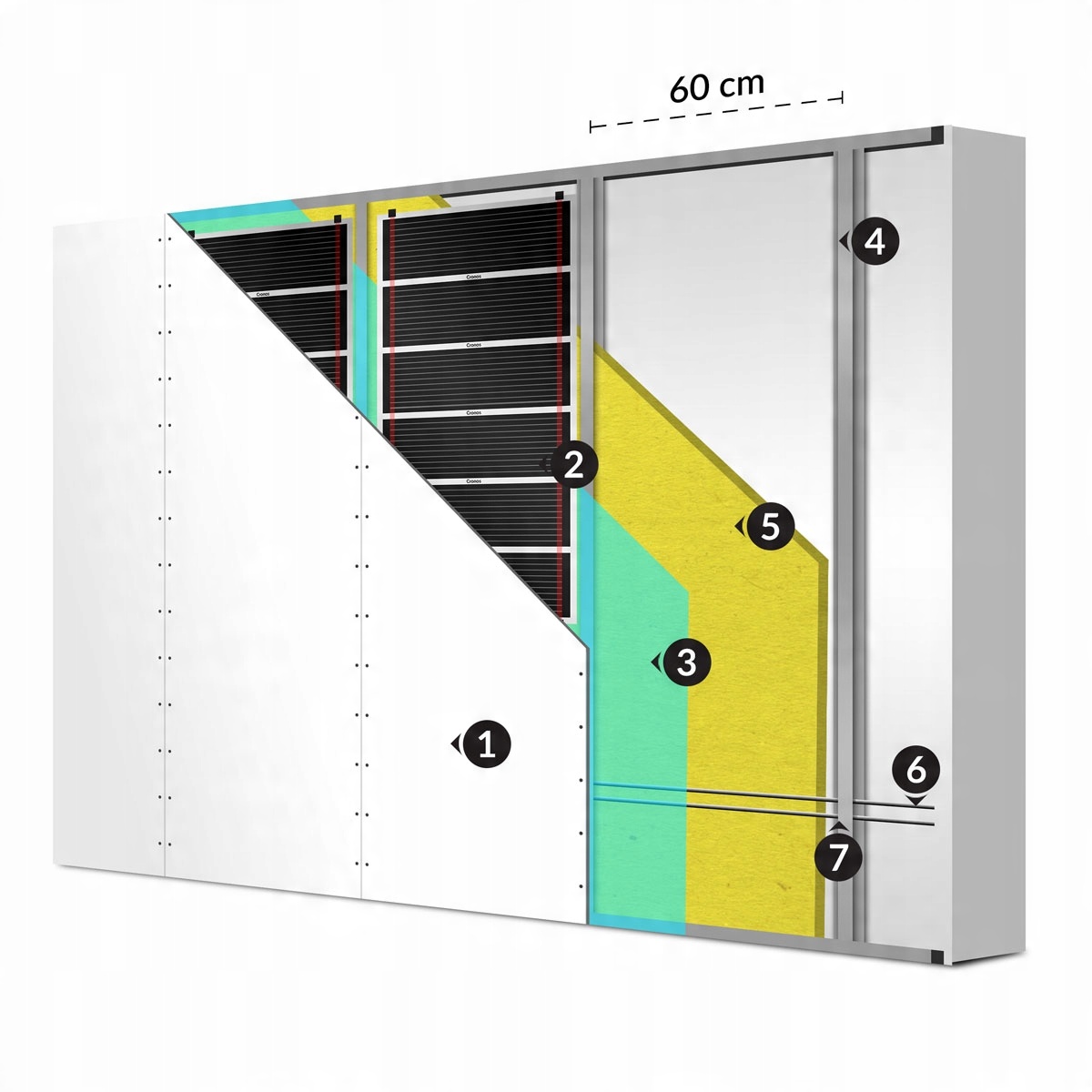 ⭐ Инфракрасная пленка Cronos также подходит для создания системы обогрева стен или потолка. Его можно размещать непосредственно под гипсокартоном при сухом строительстве. Температура контролируется термостатом.