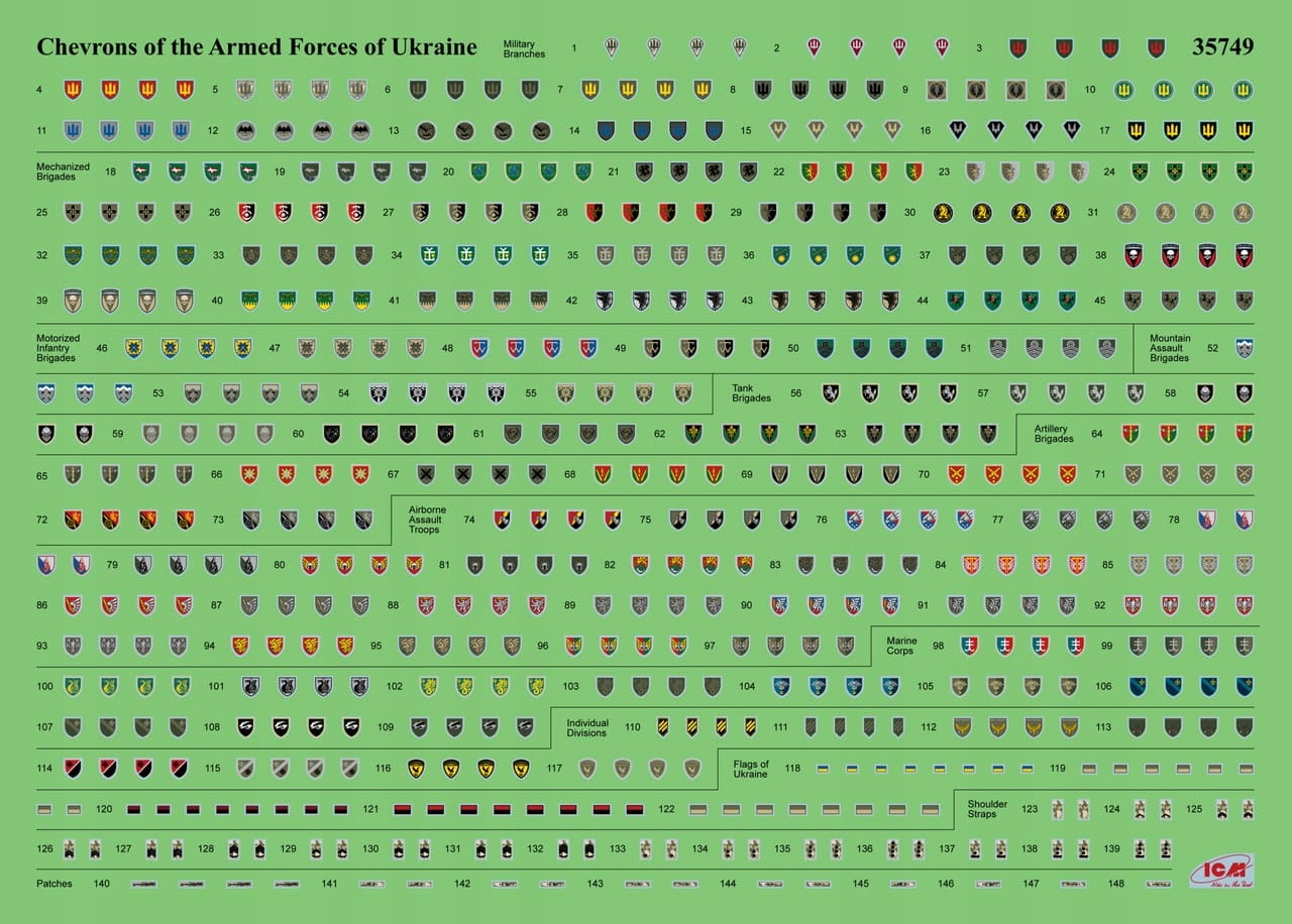 ICM 35749 1:35 Пехотное оружие и шевроны вооруженные силы Украины