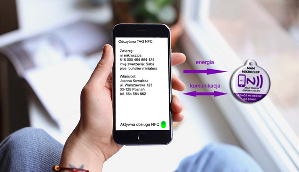 Просто поднесите телефон к метке и прочтите сохраненную информацию о владельце питомца!