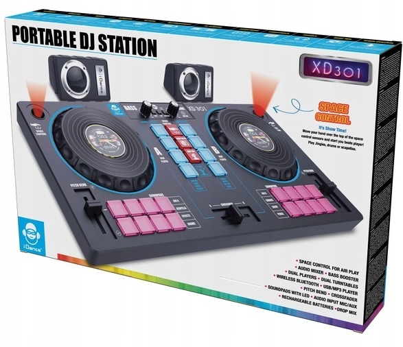 - Описание продукта Начните ваше приключение в качестве диджея со станцией ди-джея и набор идентификаторов xd301, идеально подходит, который поможет вам освободить вашу душу. Диджей! Этот комплексный диджейский набор содержит 2 динамика и аудио ввод, поэтому у вас есть все, что вам нужно, чтобы начать создавать собственные музыкальные миксы. Станция DJ XD301 оснащена двумя поворотными столами, освещенными светодиодами, звуковыми прокладками, перекрестным фарниром, контролем тона, эффектами укрепления басов и управлением пространством. Просто перемещайте руки через датчики управления космосом, чтобы запустить игрока Beats, играть в Jingle или барабанов и добавить впечатляющие эффекты и акапель в ваши песни. Благодаря функции Mix-Drop легко добавить звуковые эффекты и перенести свои миксы на новый уровень творчества!