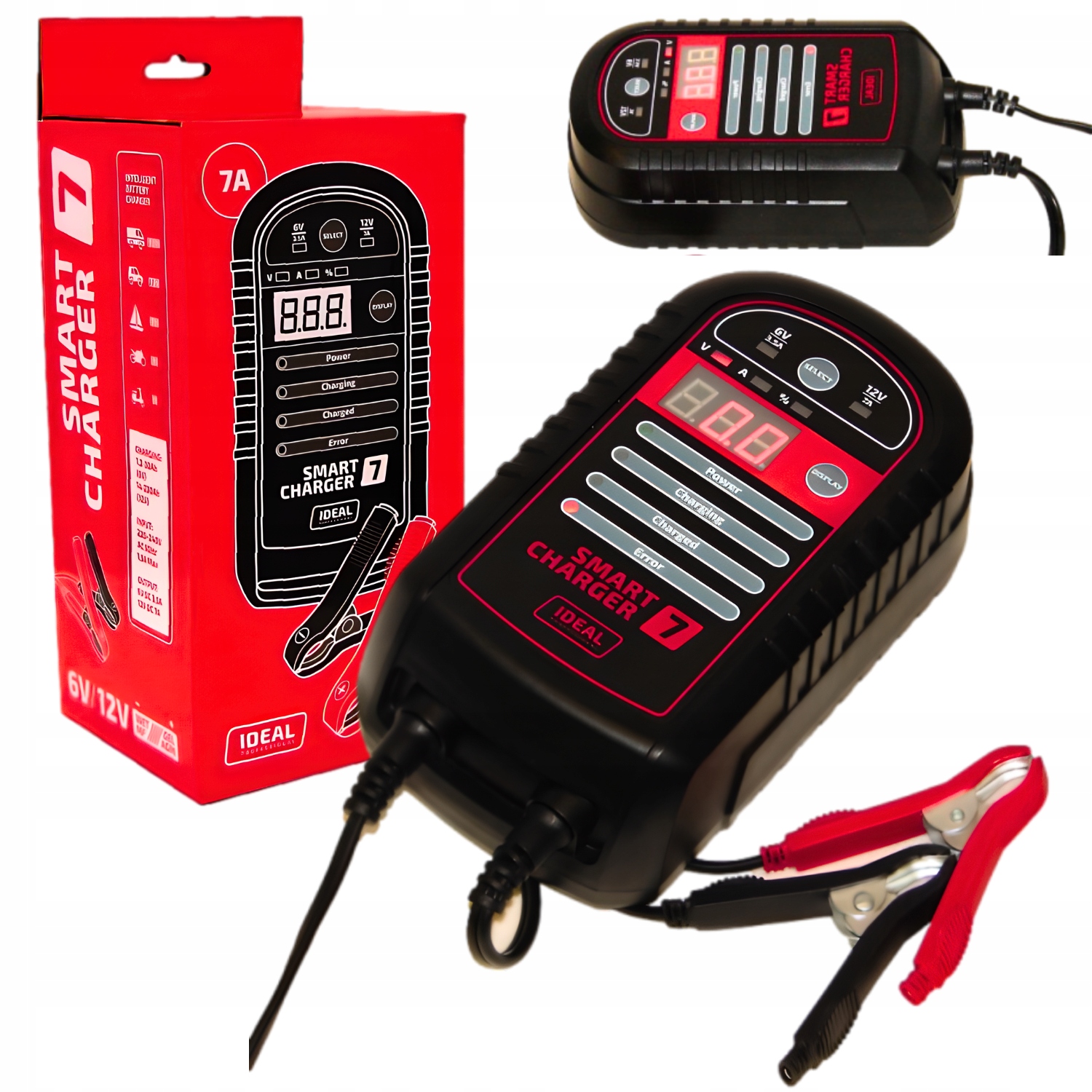 Зарядное устройство IDEAL SMART CHARGER 7 — это инверторное, интеллектуальное и портативное зарядное устройство для свинцово-кислотных, гелевых, AGM, MF и EFB аккумуляторов напряжением 6 и 12 В. > со свободной подачей электролита, предназначенное для автомобилей ( бензиновые и дизельные), мотоциклы, моторные лодки и т.п.
