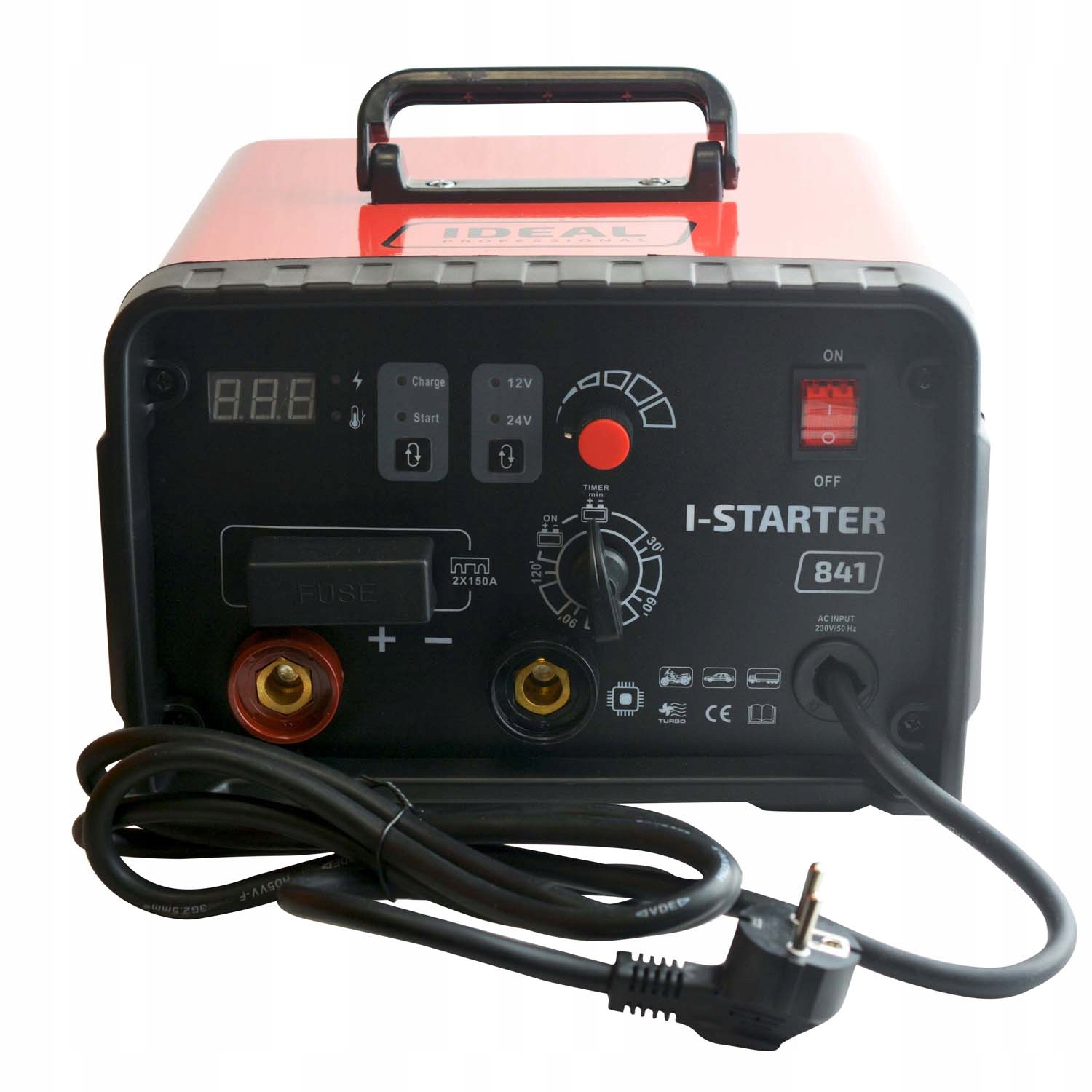 I-STARTER 841 — инверторное зарядное устройство для зарядки свинцово-кислотных аккумуляторов напряжением 12 и 24 В с функцией запуска для автомобилей с бензиновыми и дизельными двигателями (в том числе фургонов, легких грузовиков и тракторов).