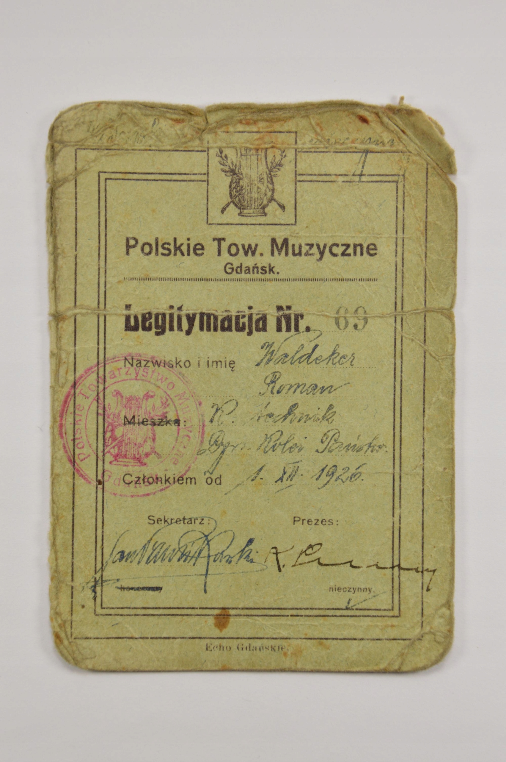 ID-карта ПОЛЬСКОГО МУЗЫКАЛЬНОГО ОБЩЕСТВА WM ГДАНЬСК 1926 РЕДКАЯ