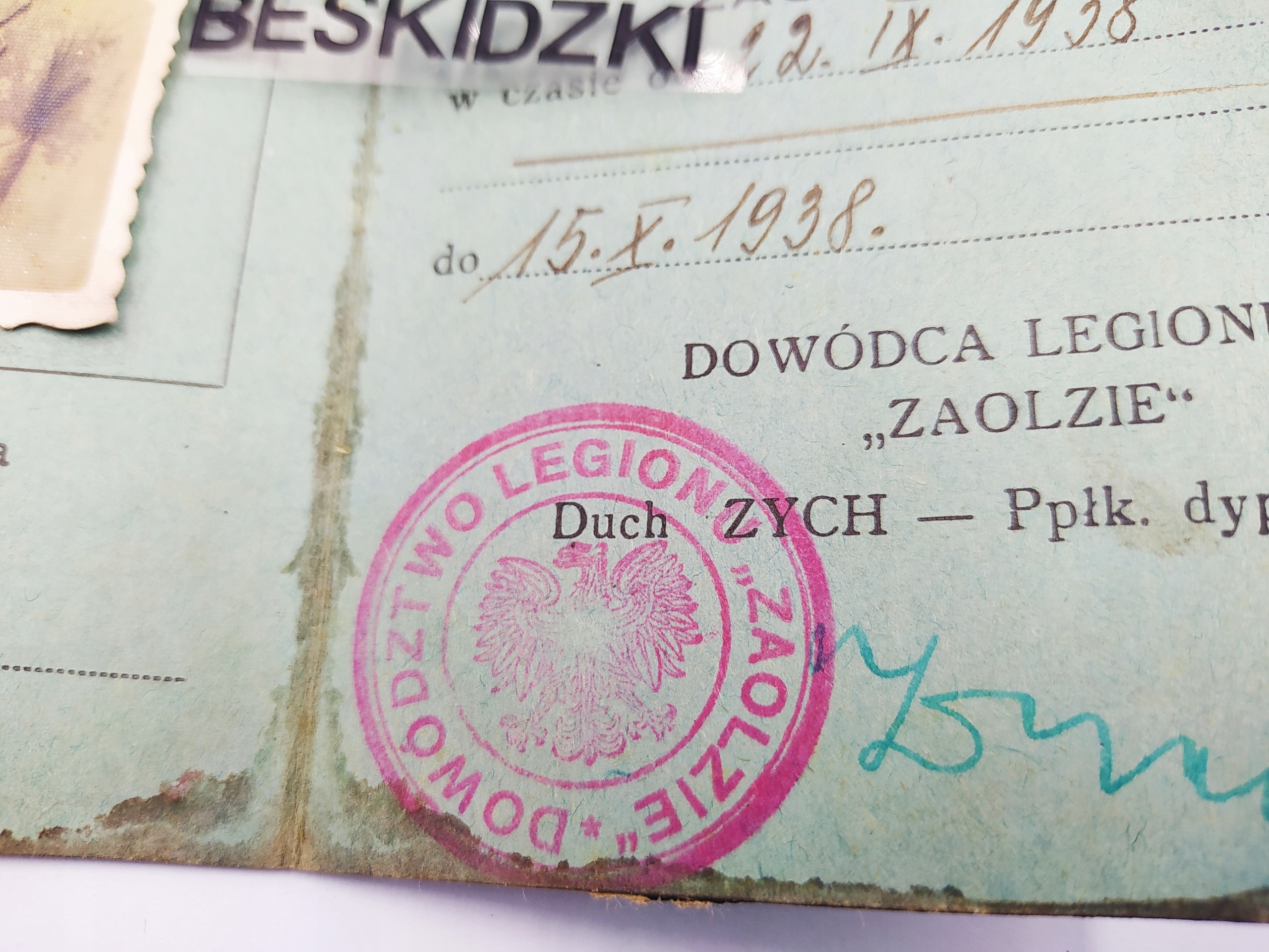 Удостоверение Заользийского легиона 1938 г. Подполковник Дуч - стрелок Зыха, группа Голеша