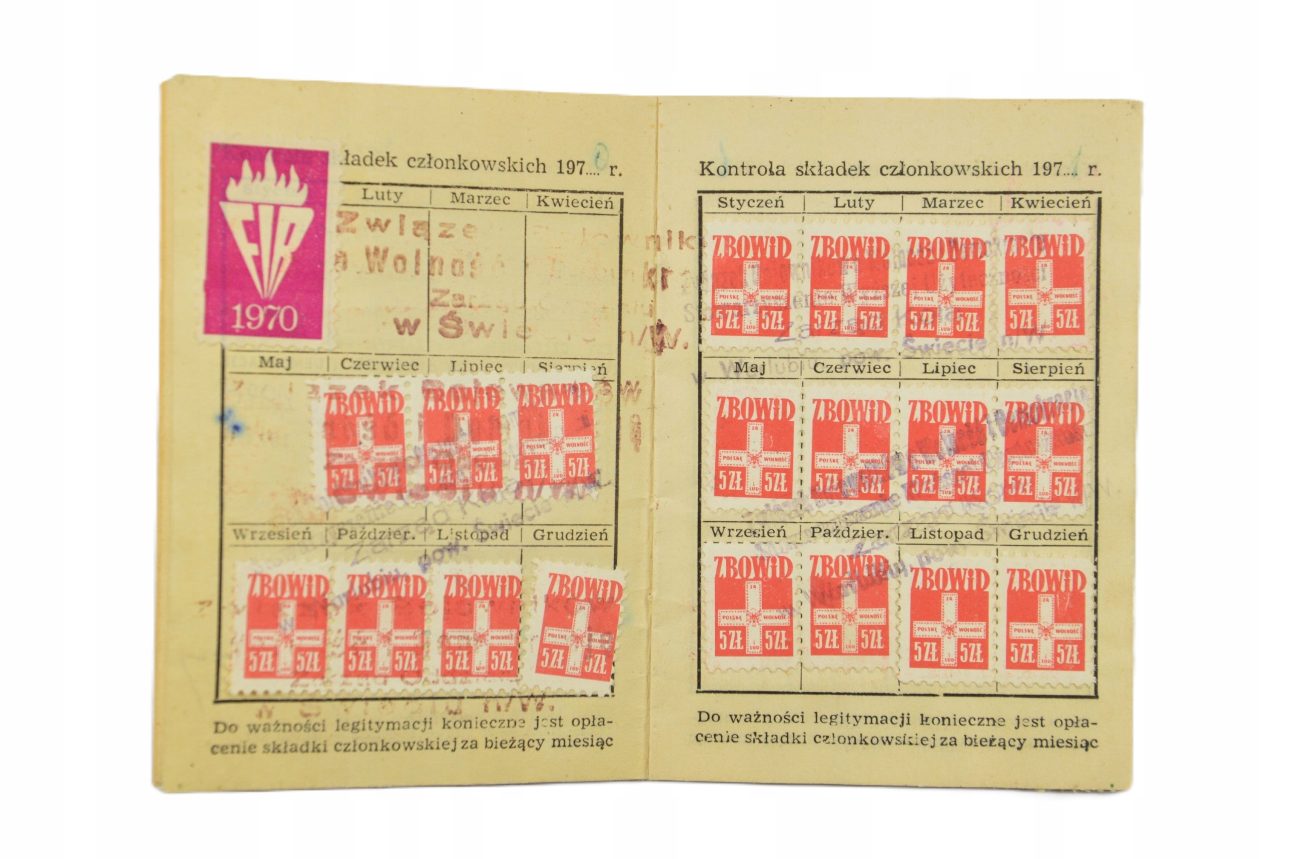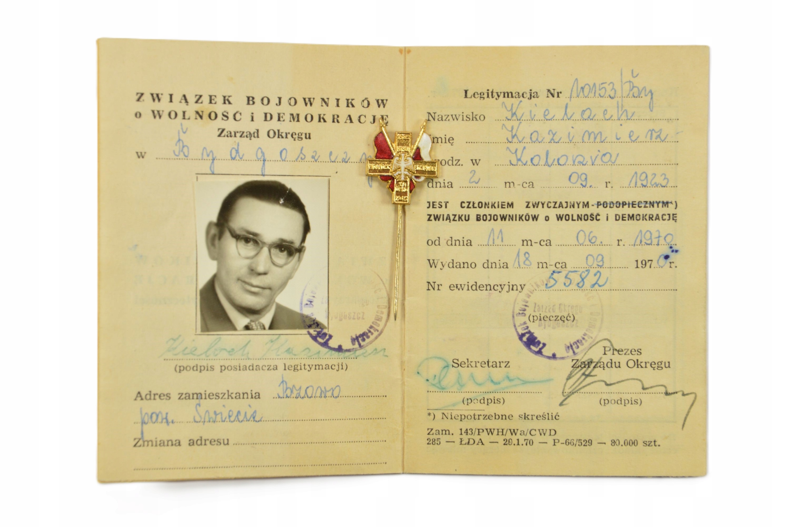 Идентификационная карта значка Zbowid 1970.