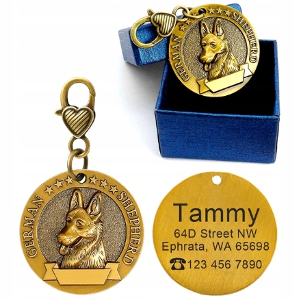 Прикрепите выгравированную идентификационную бирку на ошейник вашего питомца. Благодаря этому вы сможете быстро найти хозяина, и животное благополучно доберется до дома. На одной стороне идентификационной бирки находится изображение собаки, на другой — указанные вами данные.
