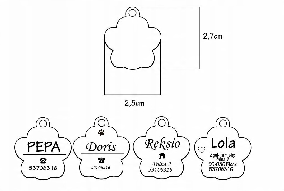 ІДЕНТИФІКАТОР АДРЕСИ СУМКА СОБАКА КОШАЯ НОГКА ГРАВІРУВАННЯ L