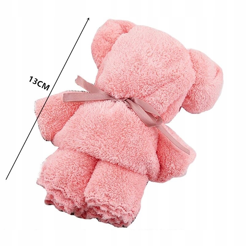 Мягкое, розовое плюшевое полотенце - это практичный и очаровательный подарок, который удивит всех. Компактный размер сложенного полотенца в виде плюшевого мишка делает его не только функциональным , но и perfect как декоративный элемент подарка. После развертывания он предлагает удобство в повседневном использовании, например, к лицу.