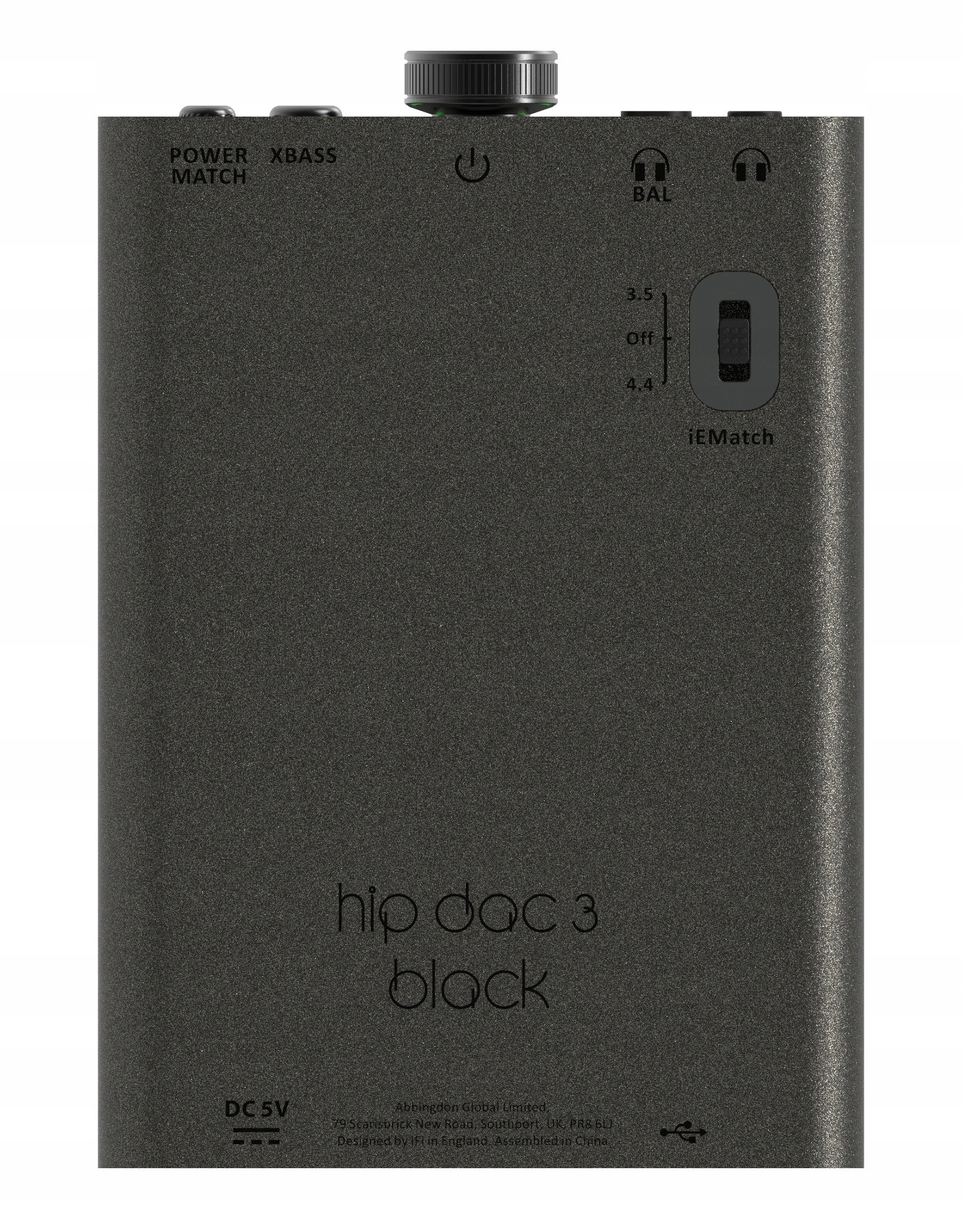 Переключатель внизу использует технологию iEMatch от iFi, оптимизирующую выходной сигнал для высокочувствительных наушников, особенно внутриканальных (IEM). Уменьшает шипение, улучшает детализацию и динамический диапазон, а также расширяет диапазон регулировки громкости.