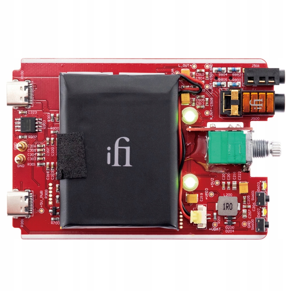 Схема включает в себя высококачественные компоненты, в том числе специальный операционный усилитель iFi OV, малошумящую микросхему источника питания Texas Instruments и высококачественный аналоговый потенциометр громкости.