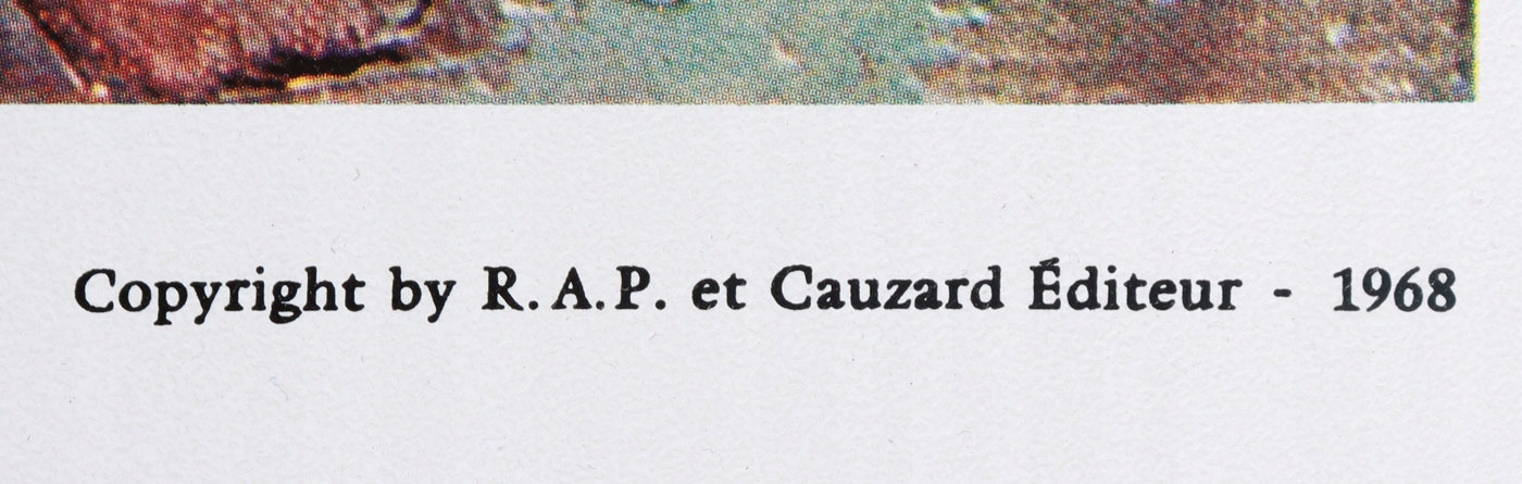 Техника: литография/бумага. Работа подписывается на доске в левом нижнем углу композиции, а под ней описывается и датируется.