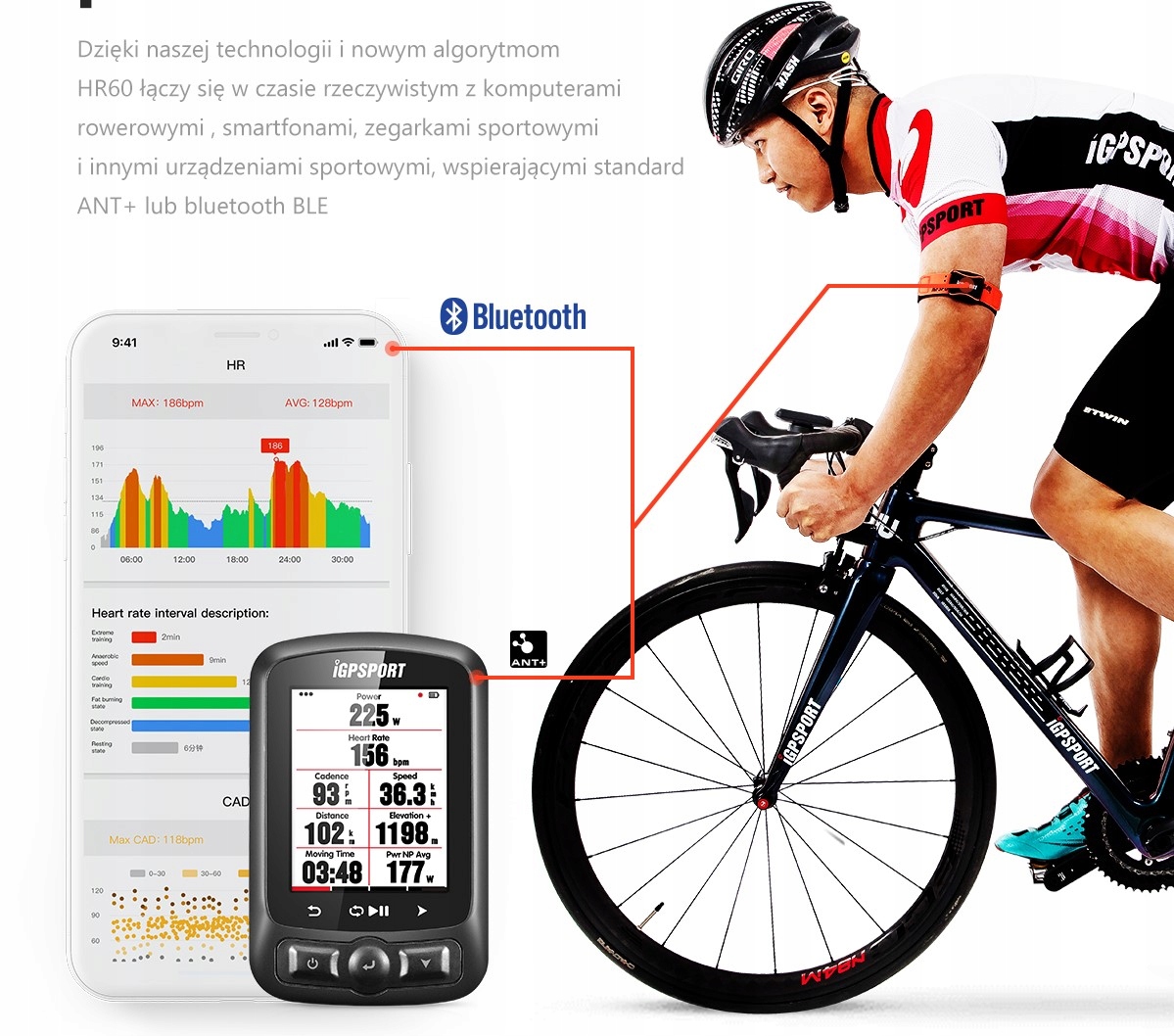 Датчик подключается к велосипедным компьютерам, смартфонам, часам и другому тренировочному оборудованию для синхронизируйте данные о частоте пульса в режиме реального времени.