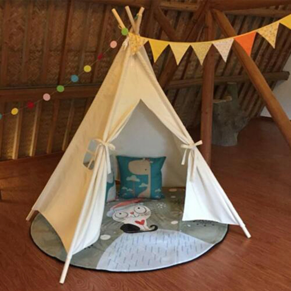 - 🌈 Красивая детская игровая палатка из прочного, высококачественного хлопкового полотна с гладкими деревянными опорами и окнами по бокам для игр детей.