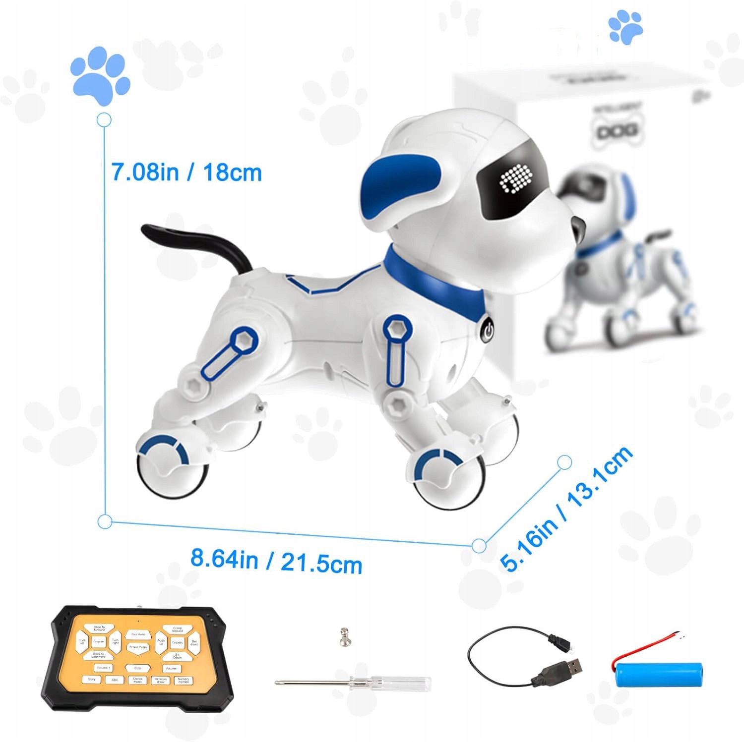 ✔️✔️✔️【Функция программирования】: Включите свое воображение, вы можете запрограммировать собаку-робота на выполнение различных действий. Вы можете запрограммировать действия по своему желанию, и собака будет повторять запрограммированные действия. Эта собака-робот также может помочь детям тренировать ловкость пальцев и разрешение звука.