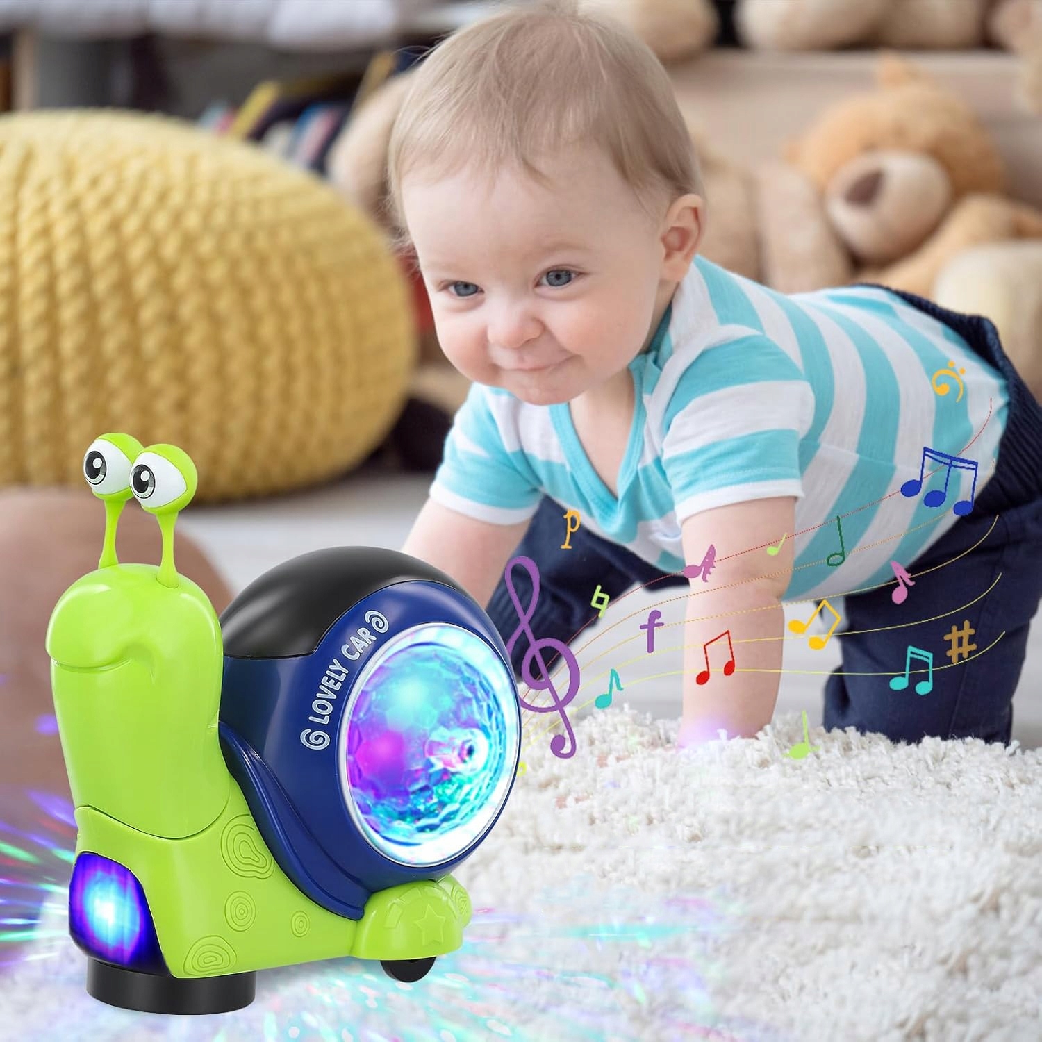 👶👶Умный дизайн улитки: Мягкие силиконовые глазки-улитки, съемные и захватывающие, маленькие улитки также могут кивать во время бега, помогать вашему ребенку тренироваться в лазании и ходьбе, а также тренировать координацию конечностей.