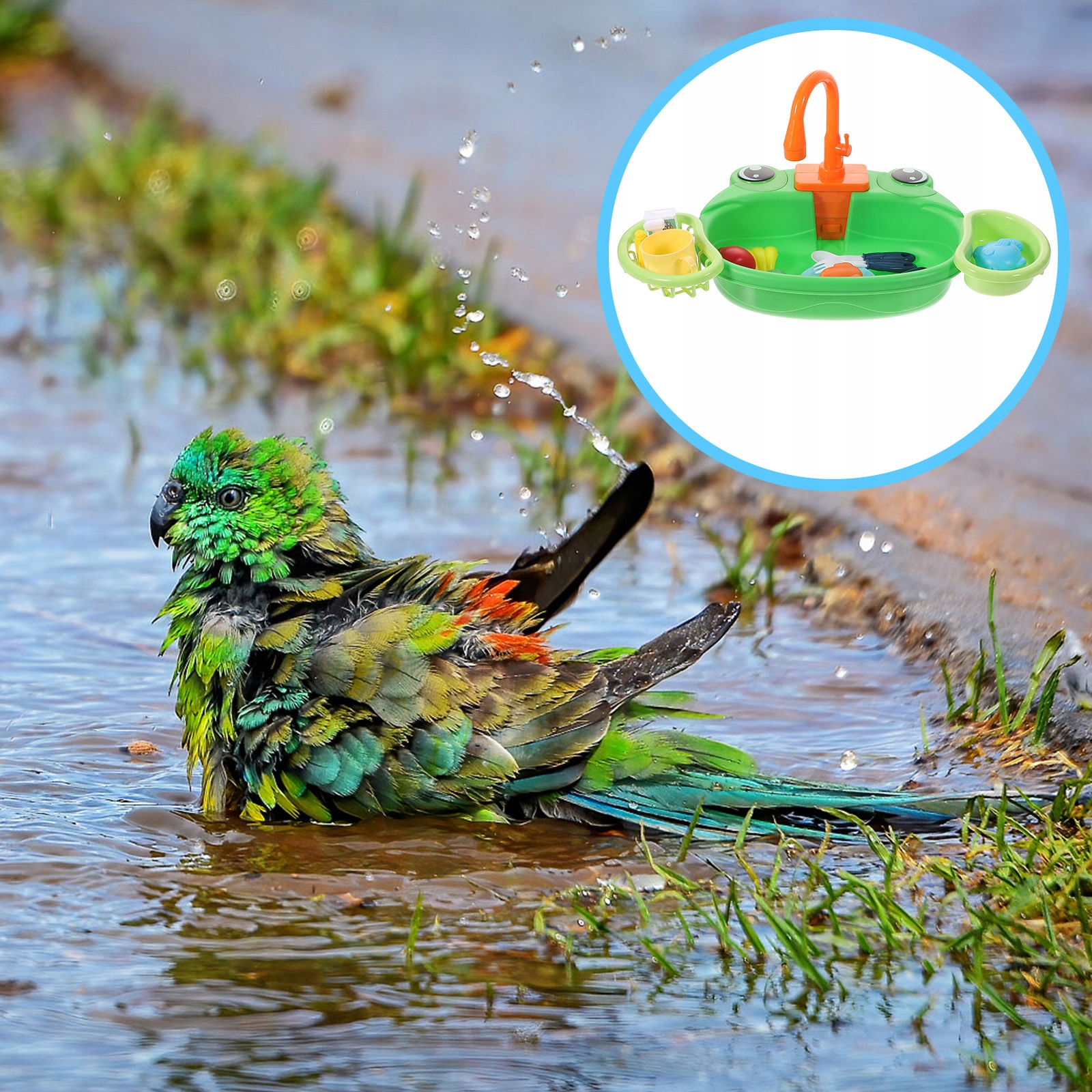 Іграшка для домашніх тварин з автоматичним купанням для ванни з пташиним душем і папугою
