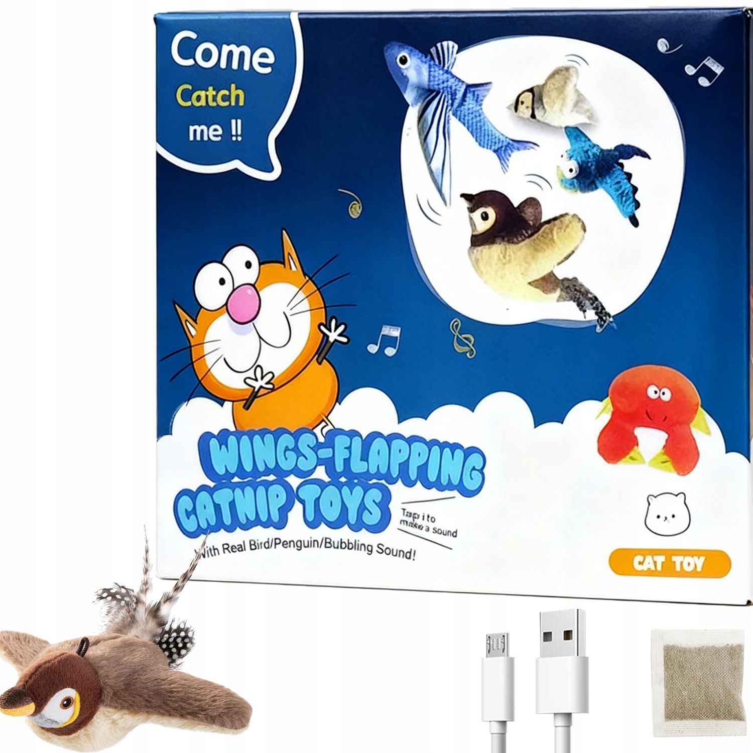 ИНТЕРАКТИВНАЯ игрушка для кошек летающая ПТИЦА со звуком на USB и кошачьей мятой