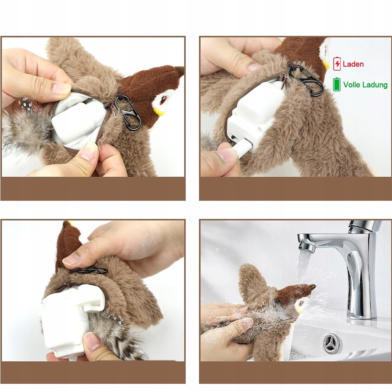 😻🐱Сзади игрушки для кошек есть молния, за которой спрятан моторчик. Подключите USB-кабель, чтобы зарядить кошачью игрушку. Зеленый светодиод указывает на полную зарядку. Полная зарядка занимает менее 60 минут и обеспечивает до 200 циклов активности, чтобы ваша кошка развлекалась часами. Мотор игрушки для кота съемный. Его следует снять перед чисткой птицы.