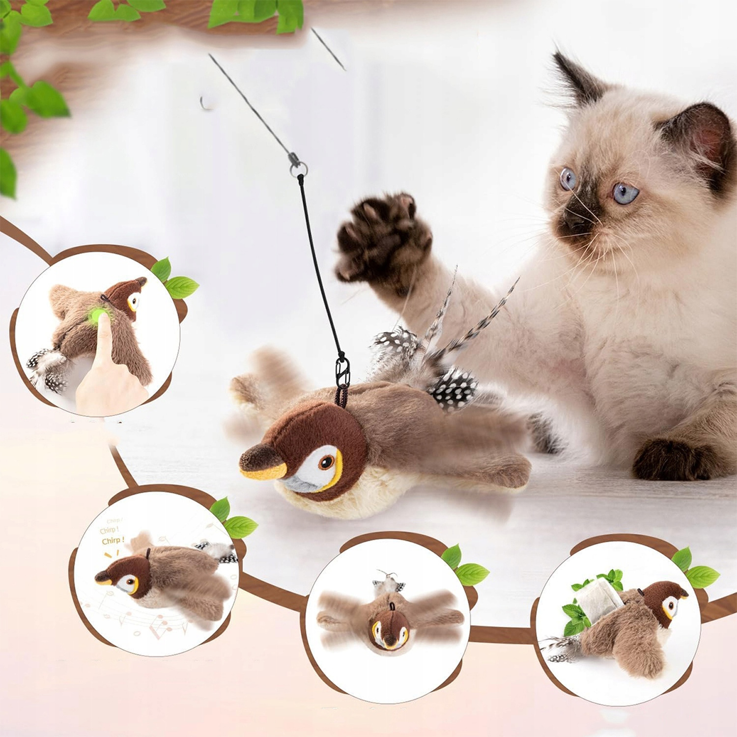 Интерактивная автоматическая игрушка для кошек с кошачьей мятой, взмахами крыльев и щебетанием, умная игрушка для кошек, позволяющая весело копать.