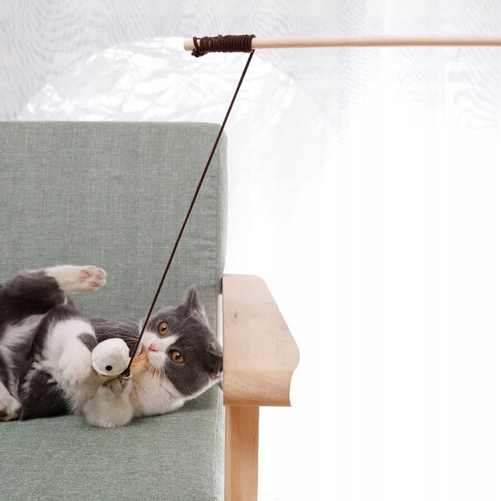 ИГРУШКА ДЛЯ КОТА РЫБАЛКА УДОЧКА 120 см МЫШКА С ПЕРЬЯМИ И КОЛОКОЛЬЧИКОМ